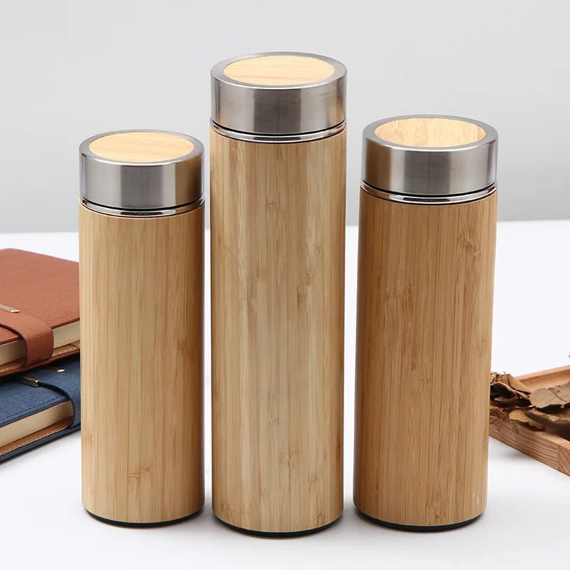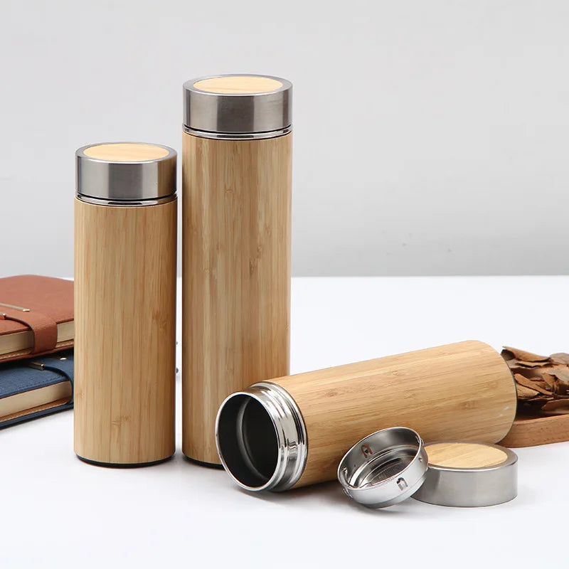 350 ml 450 ml Natural bamboo shell Thermos Vacuum Thermos with Tea Filter reusable water bottles coffee cup