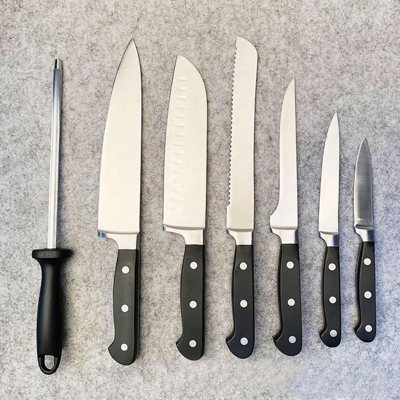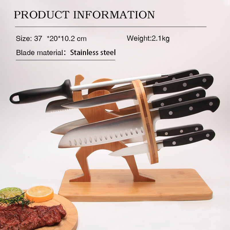 8 pcs stainless steel Spartan Soldier kitchen carbon knife set with bamboo wooden block