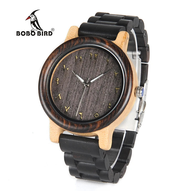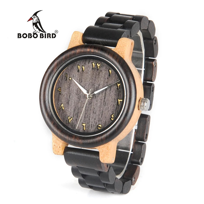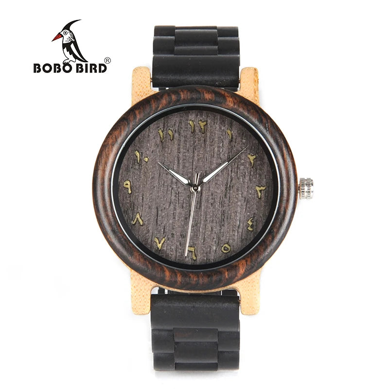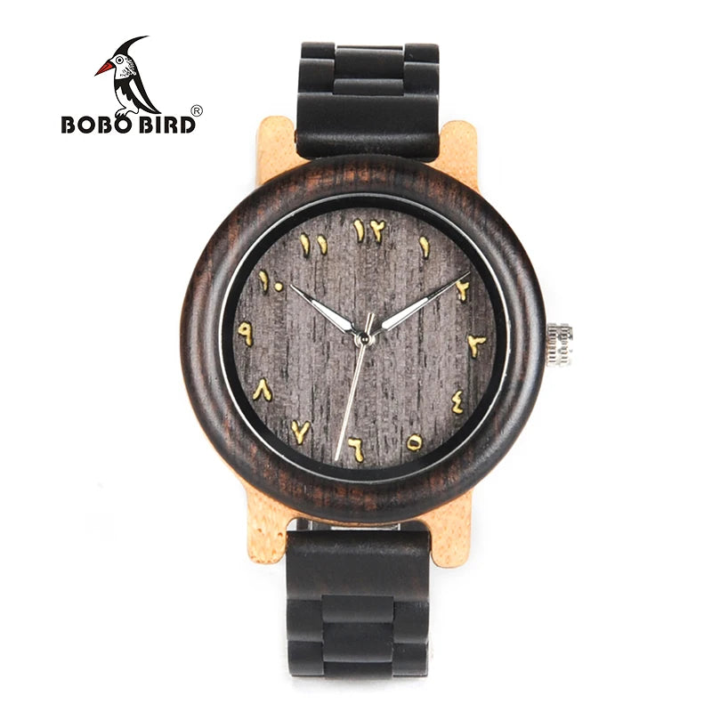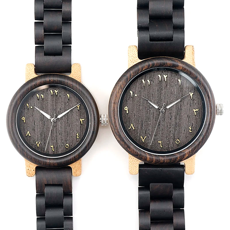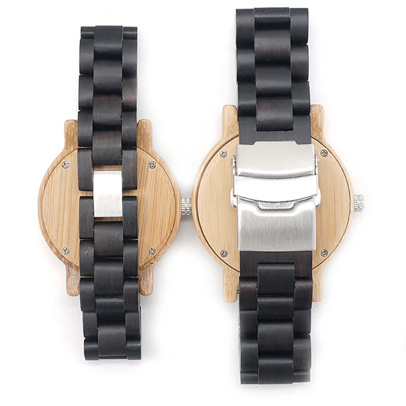 BOBO BIRD Vintage Couple Wood Watch with Bamboo Watch Case Ebony Watch Band