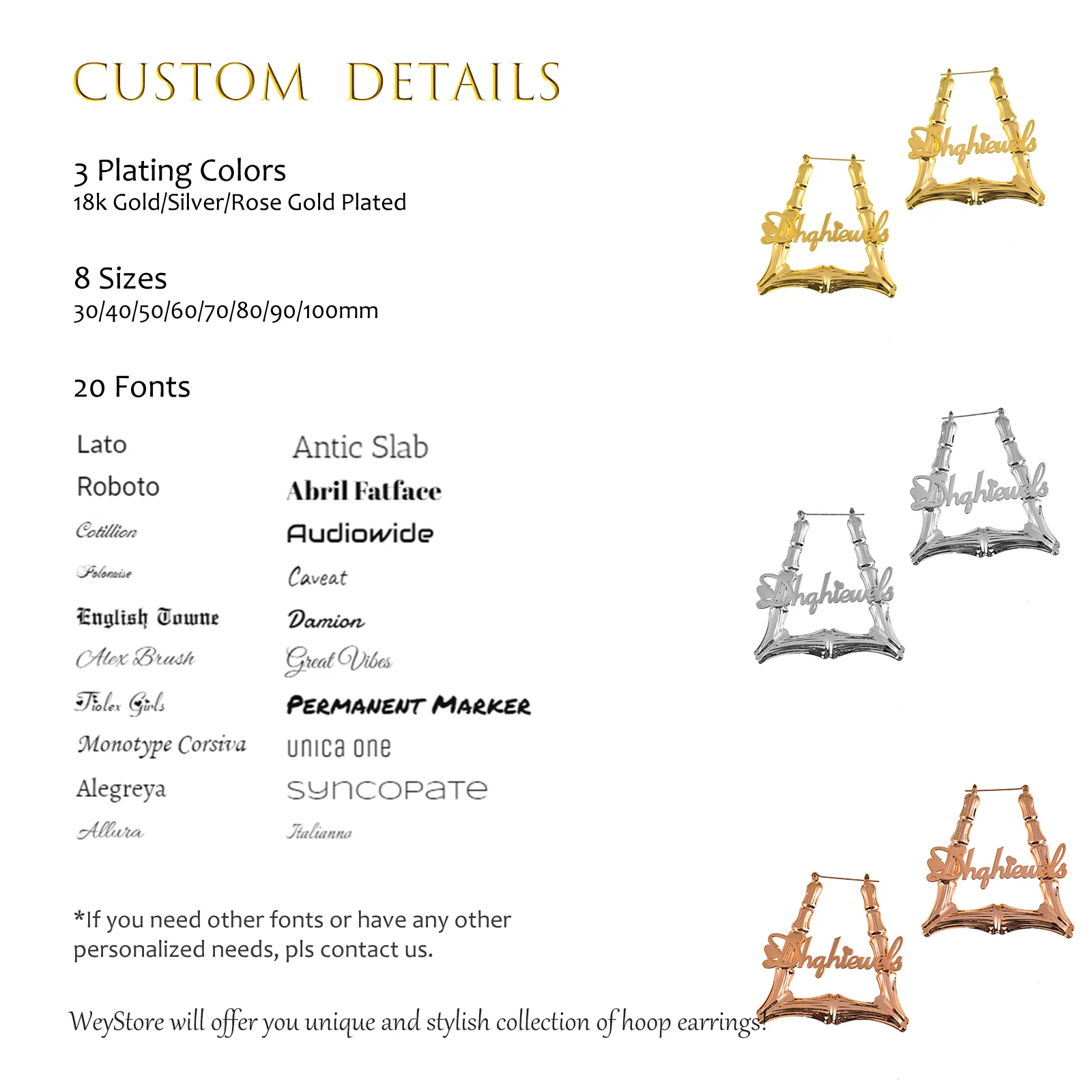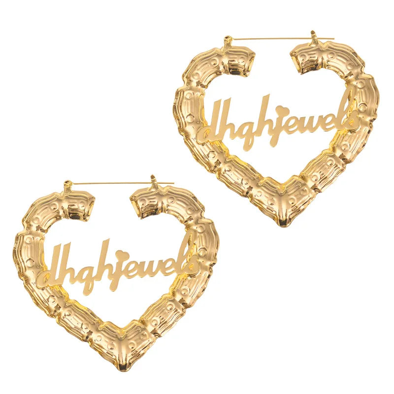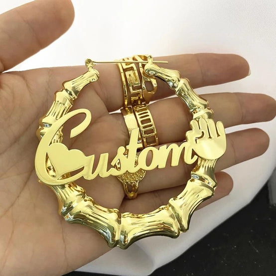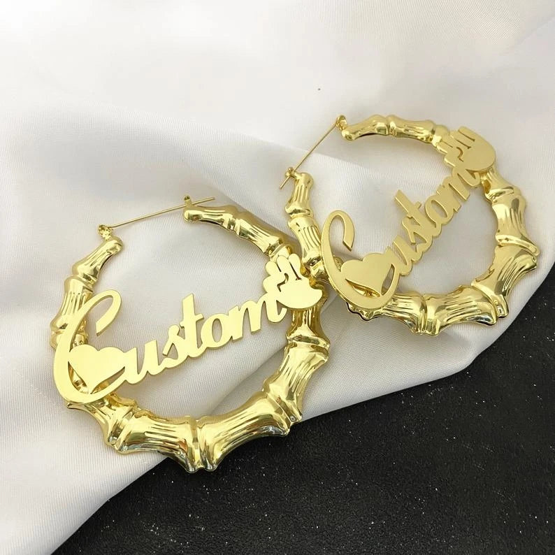 Custom Name Stainless Steel xoxo hug kiss hoop door knocker Big large Hoop earrings Rattan Gold Plated Bamboo Earrings