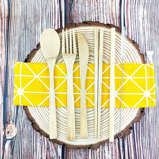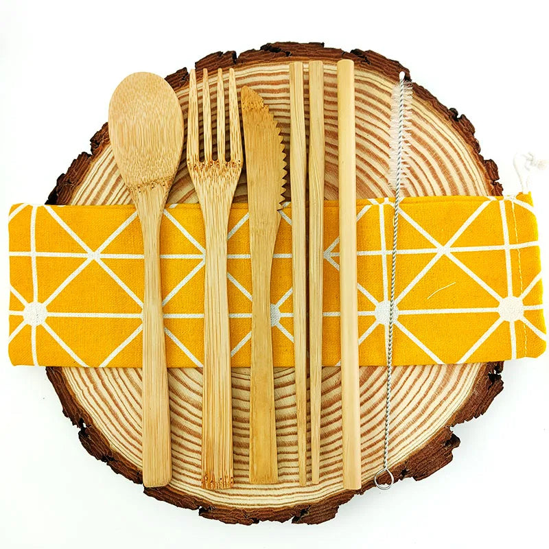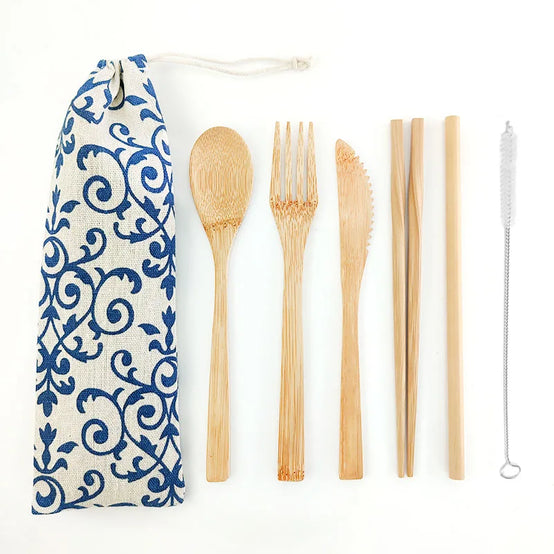 bamboo cutlery set with bag