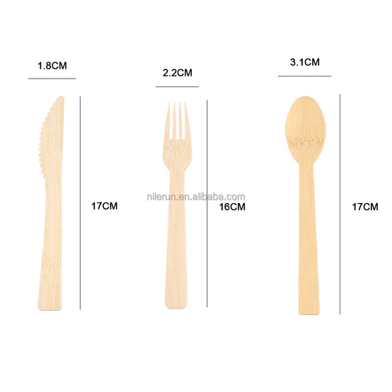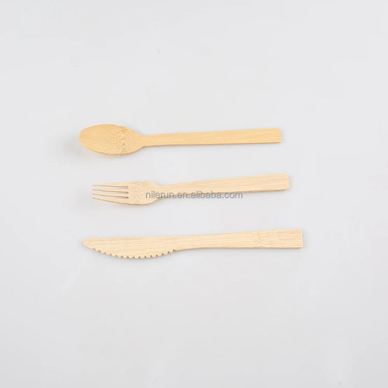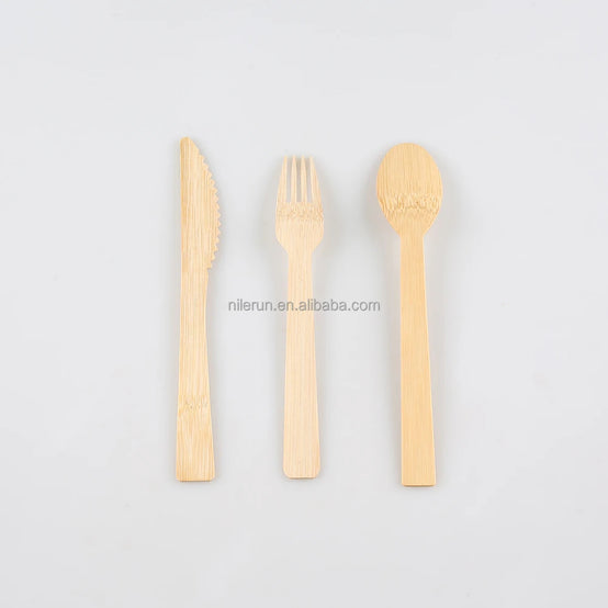 Fruit Cake Dessert Dumplings Instant Noodles Cheap Biodegradable Bamboo Knives Forks Spoons Disposable Tableware Cutlery Set