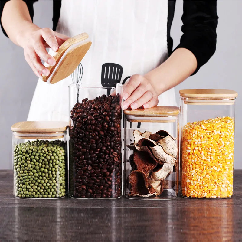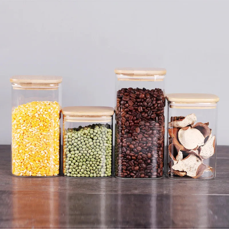 | Name | high borosilicate storage bottles Square glass jar with bamboo wood lid |