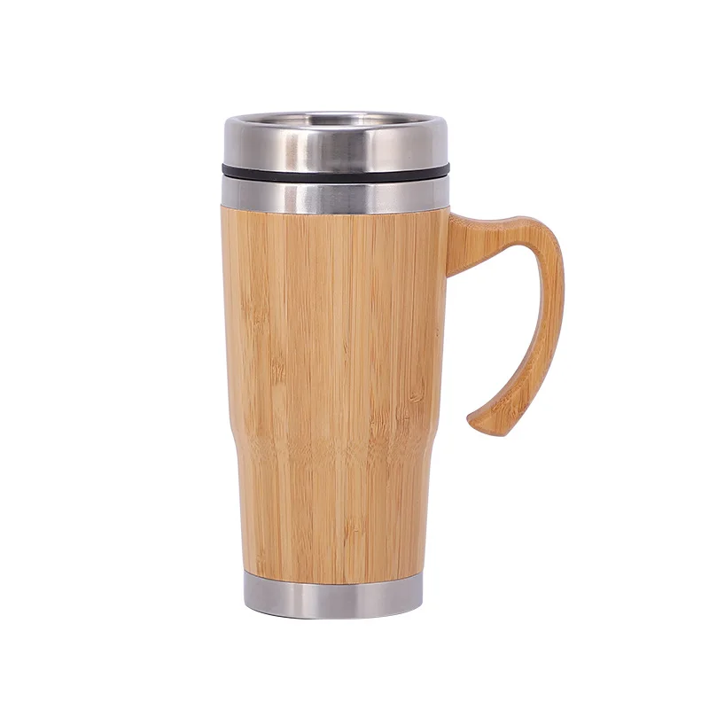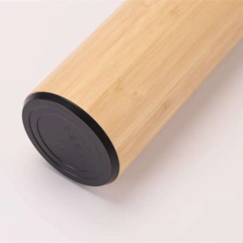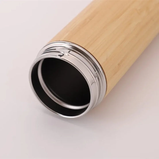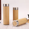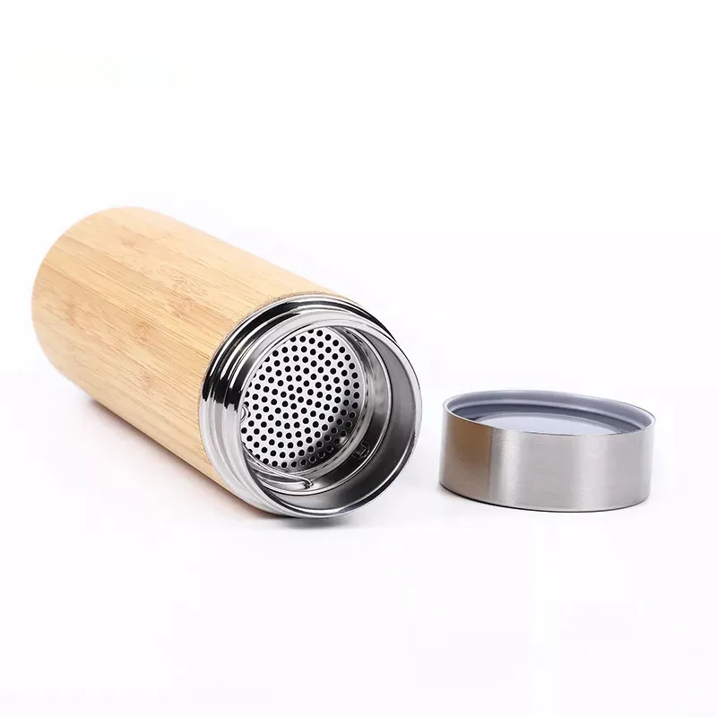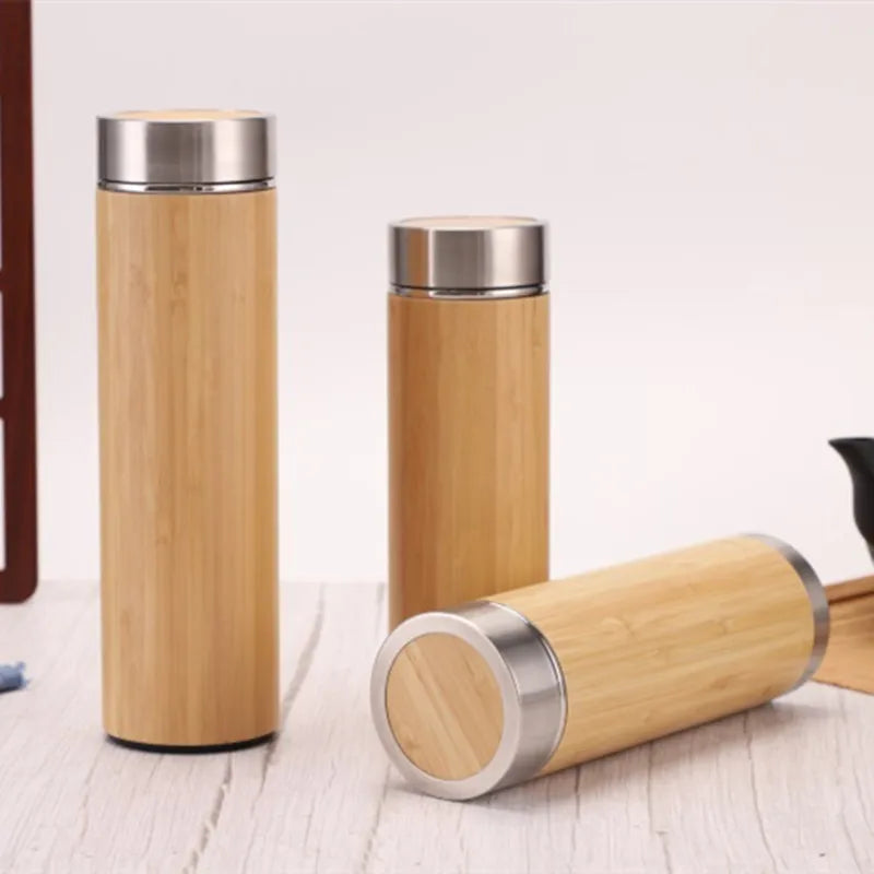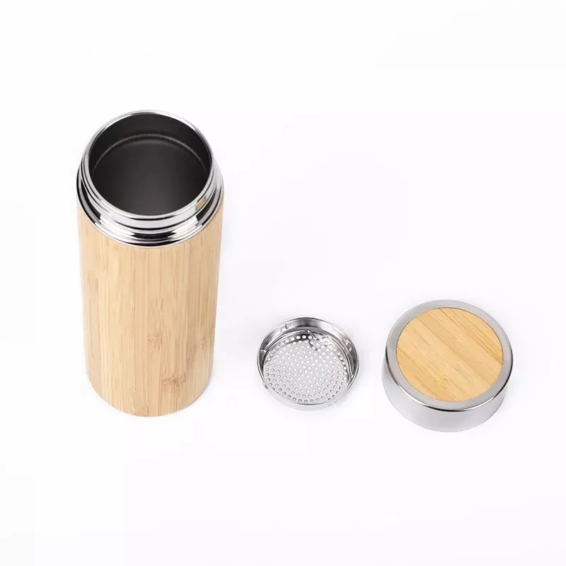 Hot sale 500ml double wall stainless steel natural bamboo water bottle heat insulated thermos tea flasks with infuser