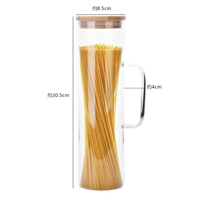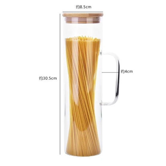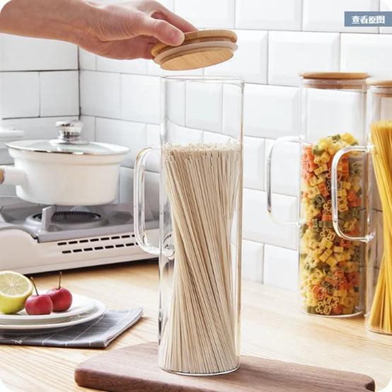 Kitchen storage glass jar with bamboo lid glass container with handle
