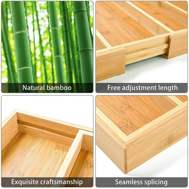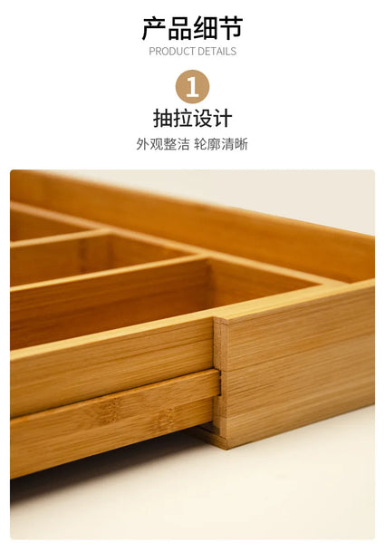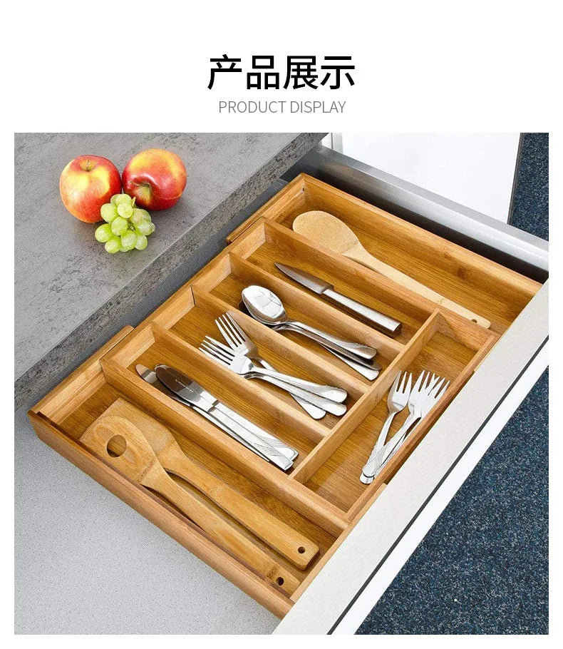 Natural Bamboo Kitchen Storage Holder Expandable Drawer Organizer Adjustable Divider Expand Kitchen Bamboo Cutlery Tray