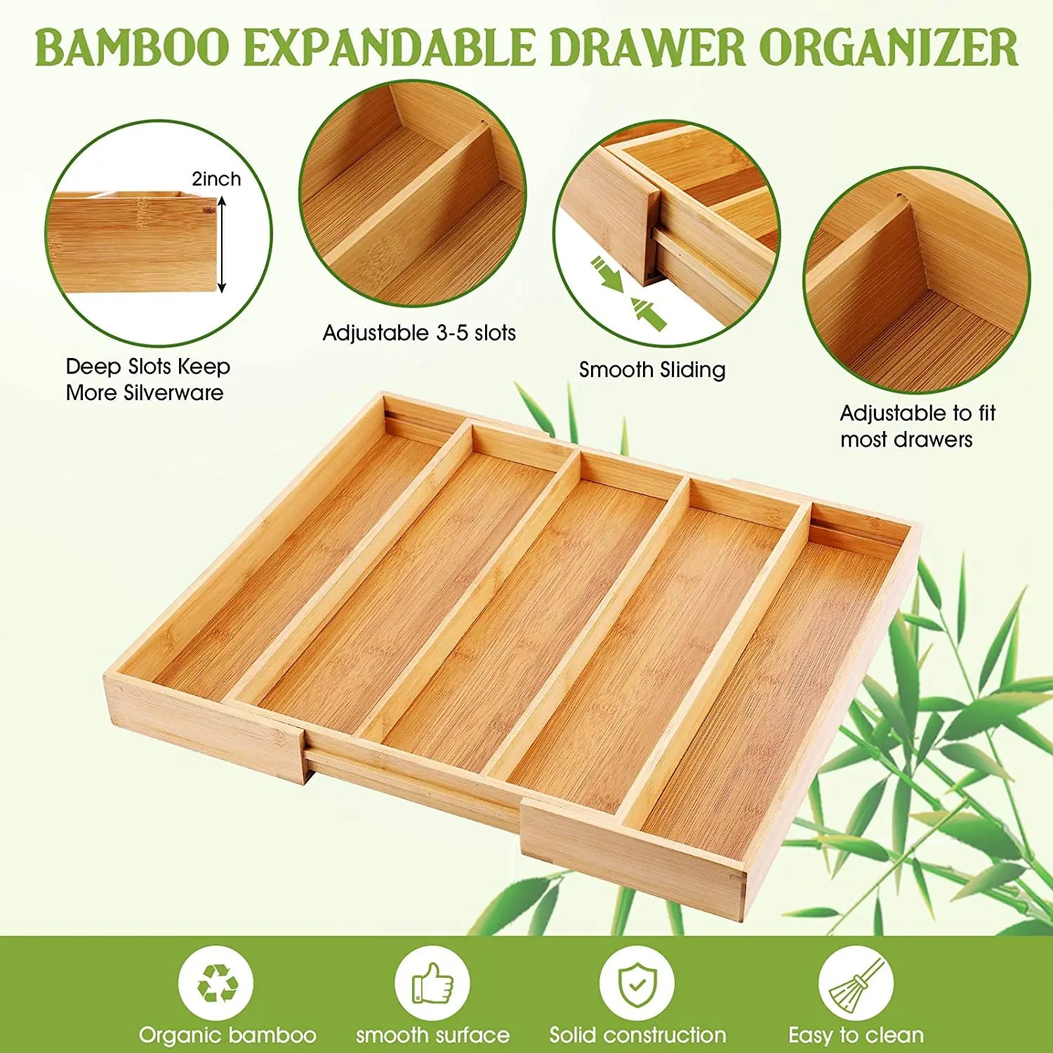 Natural Bamboo Kitchen Storage Holder Expandable Drawer Organizer Adjustable Divider Expand Kitchen Bamboo Cutlery Tray