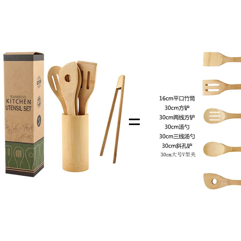 New Arrivals Bamboo Cook And Serve Set cookingware Reusable Bamboo Cooking Utensils Bamboo Spoon And Spatula