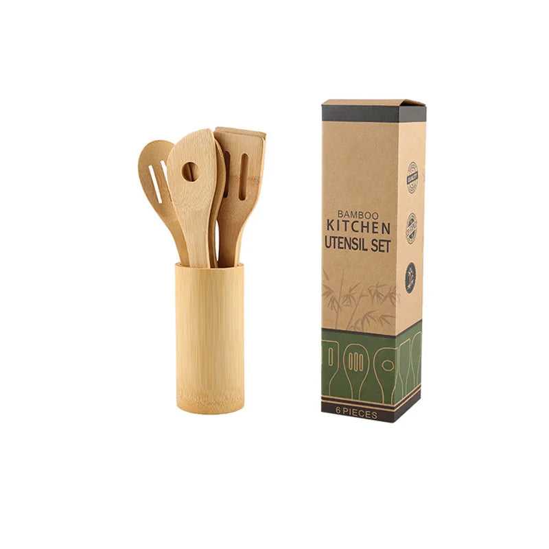 New arrivals housewarming gift cooking ware mixing spoon spatula serve set reusable bamboo cooking utensil set with box