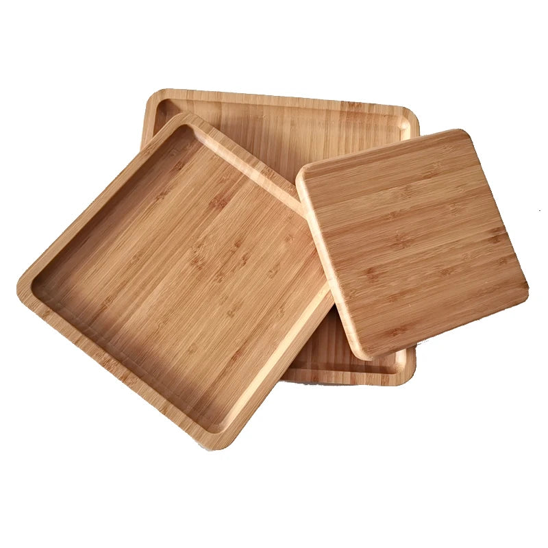 Square Wooden Bamboo Circle Tray for Coffee Table, Food, Ottoman