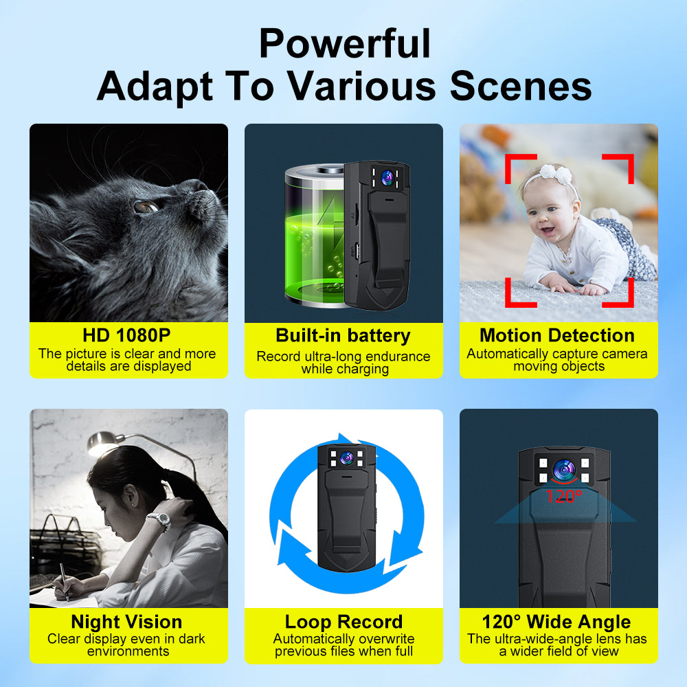 2023 New Full 1080P HD Mini Camera Camcorder Body Worn Cam Small Bike Back Clip Pocket Cameras Sports DV Car DVR MD33 camera