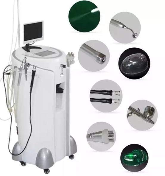 Main accessories and Their Uses 1.Lance boom----it can give off the oxygen after pressed the control button; It can give off the essence after drew the control button backward; It also can give off the misty combination of the essence and the oxygen after adjusted. There is a essencen memorizer setting on the head of the lance boom. 2.Sucking pen---- it is used for draining and cleansing the lymph. 3.Nozzle---- it is used for the oxygen injection of the skin. 4.Facial mask ---- it is used for the oxygen inhalation and fragrance-impregnation cleanse. 5.BIO wrinkle-dispelling stick---- it is used for nursing skin wrinkle. Operation Theory The Almighty oxygen jet ionizes the gas of the air and creates the oxygen of 98% purity under the high pressure separation method. Together with the special design nozzle, lance boom and facial mask, the jet injects, spays and inhales the oxygen directly to the wrinkle and dry skin, which makes the skin absorbs the oxygen quickly, adds the activity of the human cells and accelerates its metabolism. So that it can reach an unbelievable treatment effect. Meanwhile, it also can use the suction of the sucking pen to cleanse the lymph, use the Bio biology current to pull skin. Main Efficacies 1.Oxygen spray treatment: use the oxygen, together with the active concentrated essence, to do the pure oxygen massage on the skin in order to treat all kinds of prurituses, sensitive skin, neurotic dermatits, contact dermatitis, eczema, whelk, the sunlight symptom, etc.. 2.Lymph drainage treatment: Make the lymphatic and the blood circulation smooth and dispel the impurity and the toxin via the suction. 3.Oxygen injection treatment: inject the pure oxygen and the special prescribed beauty product into the bottom of the epidermis via the no needle pressure oxygen injection. Which is to strengthen the cells, increase its resistibility, dispel the waste easily and promote its metabolism. So that it can treat and improve the problems that caused by the oxygen shortage, such as dark and light skin, wrinkles, looseness, pigmentattion and the conventional skin problems. 4.Oxygen inhalation treatment: wear the facial mask and inhale the pure oxygen together with the fragrance-impregnated essence via the function of the chemical plating. A: Respiratory system----rhinitis, faucitis, catchcold,etc.; B: Neural system----neurasthenic, insomnia, migraine, etc.; Procedures of the oxygen injection, oxygen spray, oxygen inhalation Oxygen spraying (Do with the lance boom) Put the nozzle into the suited aquiform skin nursing product; press backward to spray and press downward to spray oxygen. (To choose the aquiform skin nursing product according to the difference customers’ skin) Oxygen injectiong (Do with the nozzle) To choose the suitable essence according to the different skin. The jet can whiten and moisten the dry skin or thin the pore and control the grease of the greasy skin. Notice: turn the pressure to 2LPM when doing the oxygen injection. The time for the whole face to inject the oxygen is 30 minutes. And do it from the forehead to the chin. For the skin in the eyelid is much thin, try one’s best to avoid this place when doing the operation. Oxygen inhalation ( Do with the facial mask) Put pure water into the glass, open the oxygen delivery function, put the oxygen facial mask on the nose and inhale the oxygen. Then do the mask-film nursing.