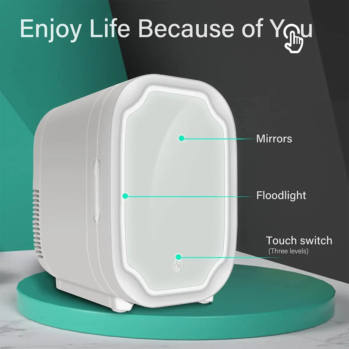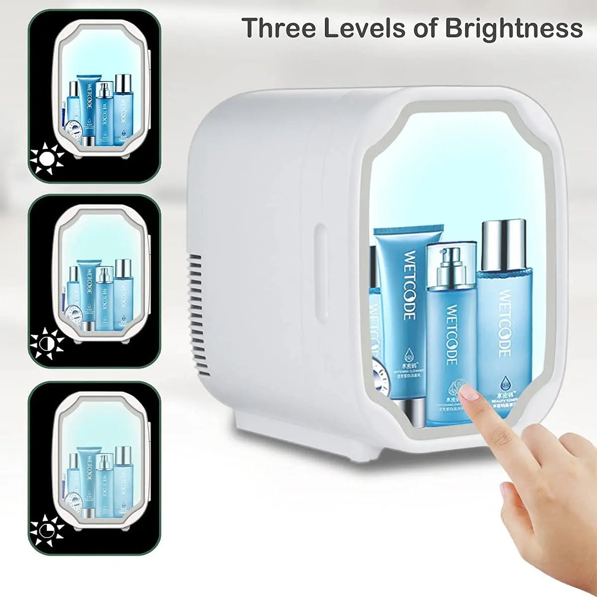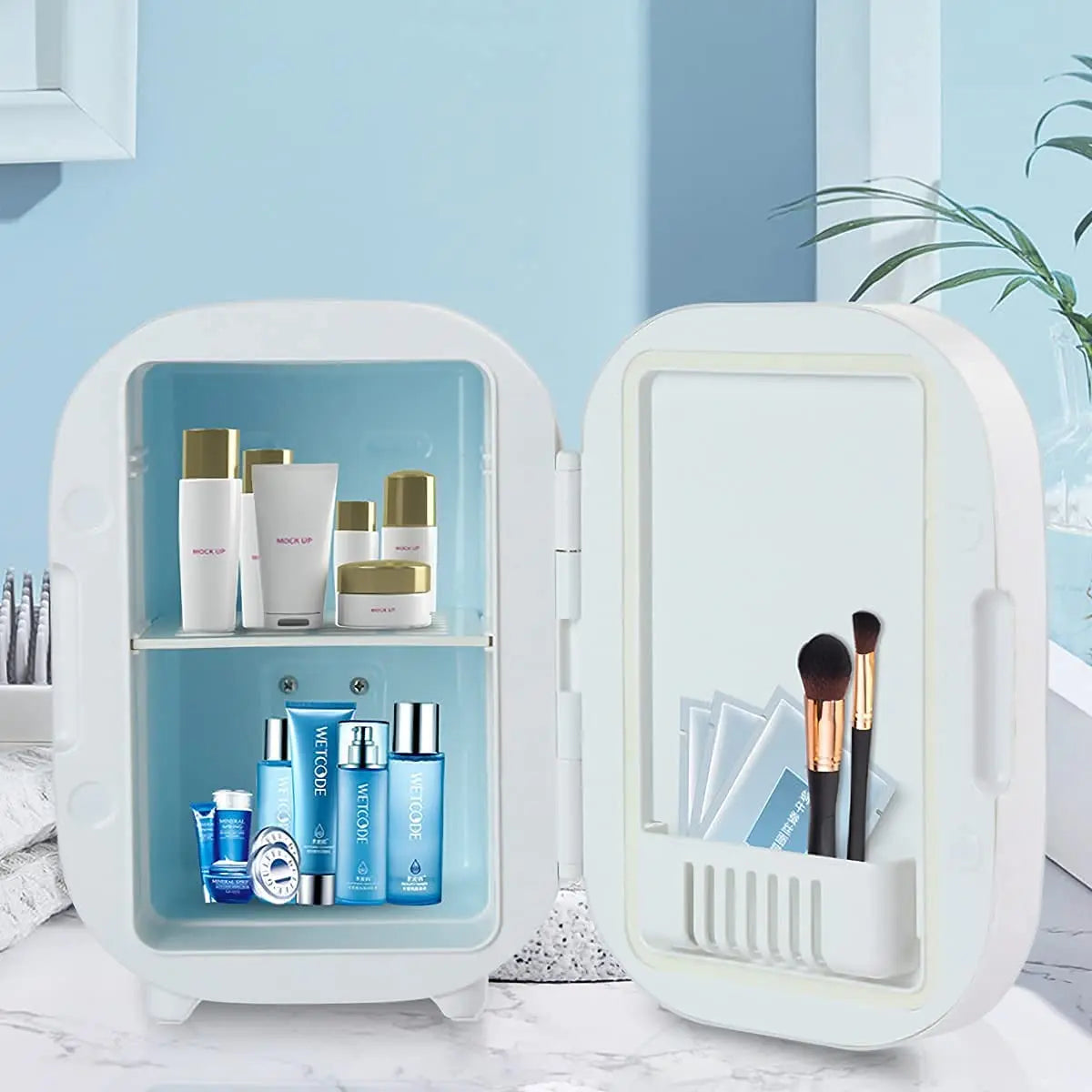 8L 12V Custom home cosmetic makeup Skincare beauty mini portable car fridge with mirror small refrigerators glass door cost