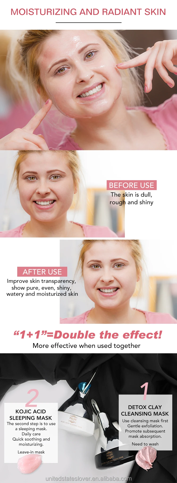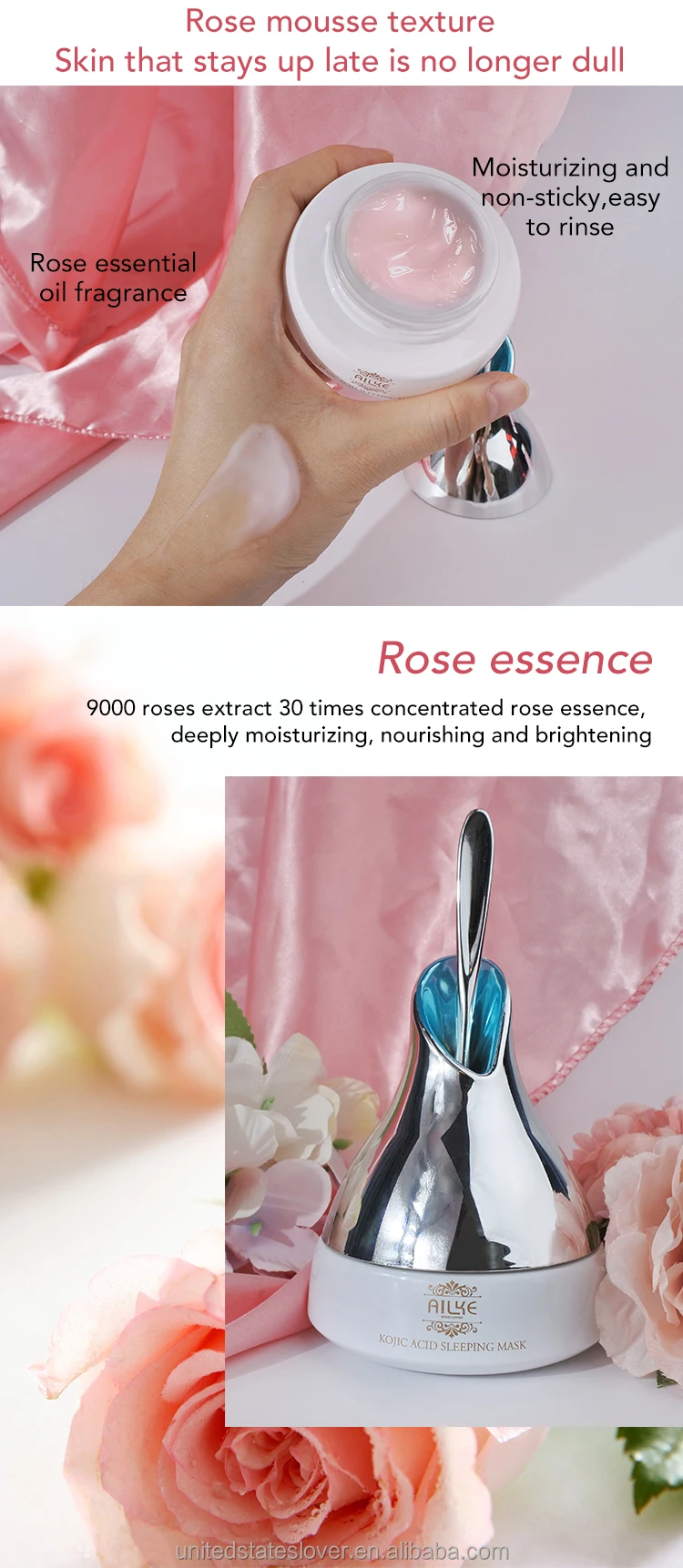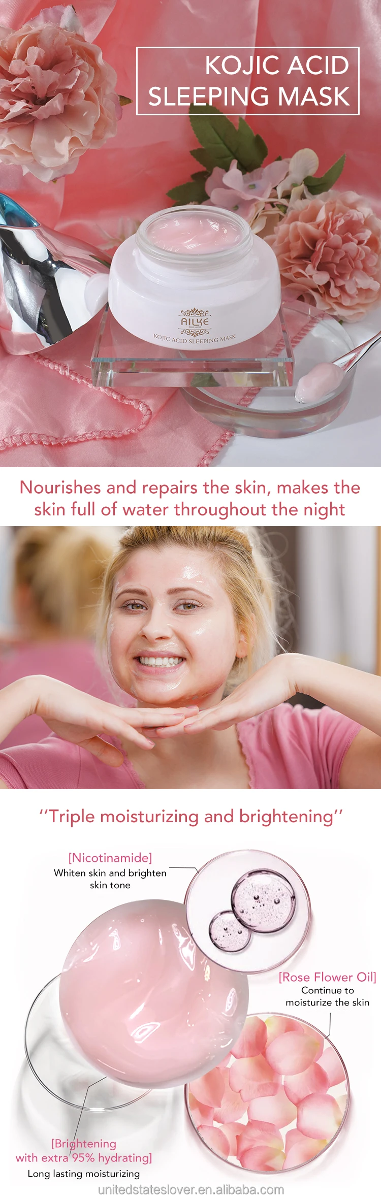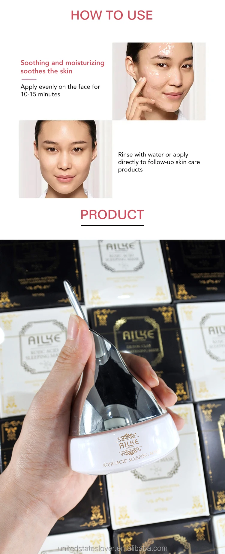 Sleeping mask is rich in whitening kojic acid and antioxidant ingredients,improve rough and dull skin, smoother, softer, and restore Healthy and attractive complexion