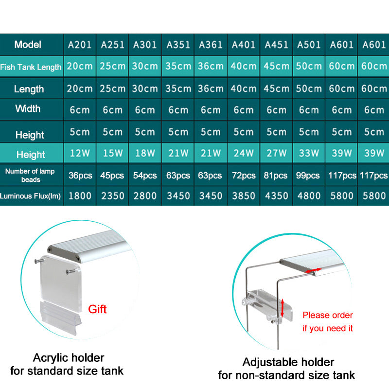 | Tank Length | 20CM | 25CM | 30CM | 31CM | 35CM | 36CM | 40CM | 45CM | 50CM | 60CM |