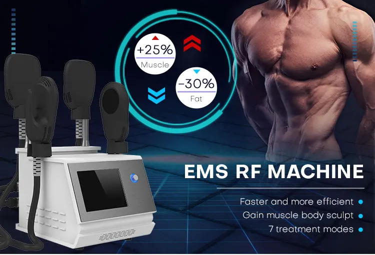 NEW GENERATION EMS+RF : * Big output working frequency, powerful than normal EMS machine * EMS+RF technology to achieve the ideal body contouring. * 7 Tesla stronger energy output. * Easy to operate, 2 treatment modes for your reference ( Manual mode & Auto mode) * Comes with 4 handles, 4 handles can work together or single. * It can decrease fat by 30% while also increasing abdominal muscle mass by 25%