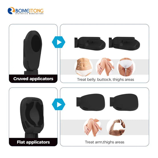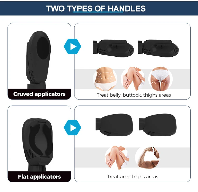 Normal handle :suitable for large areas of muscle gain and fat loss in abdomen buttocks and other parts 4 handles=EMS+RF Limb handles : suitable for small areas, such as ams, legs and shoulders