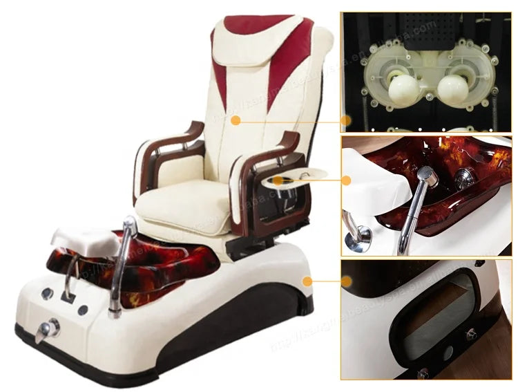1. pedicure chairs with firberglass base , Crystal bowl ,pipeless jet in the bowl massage for foot , and easy clear