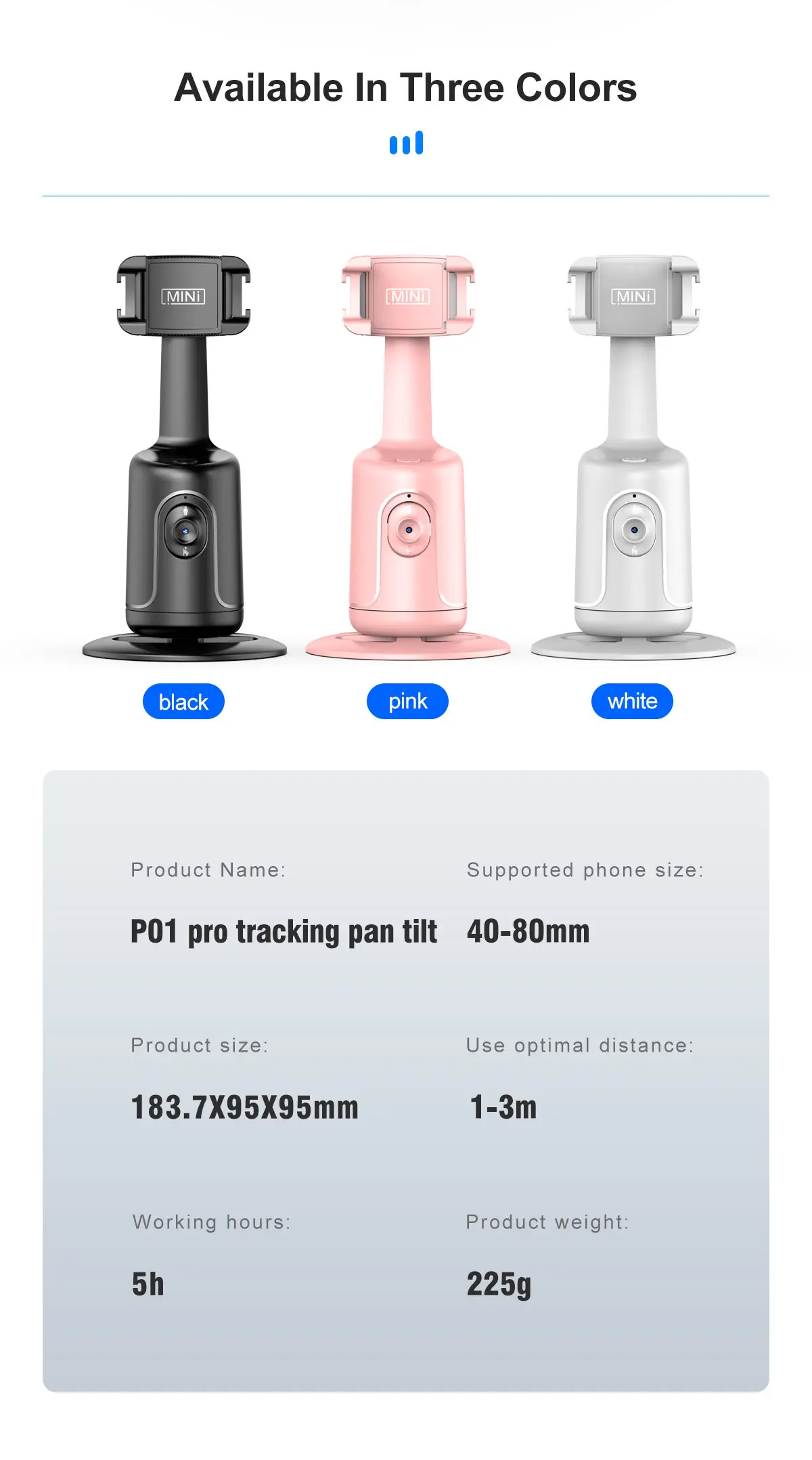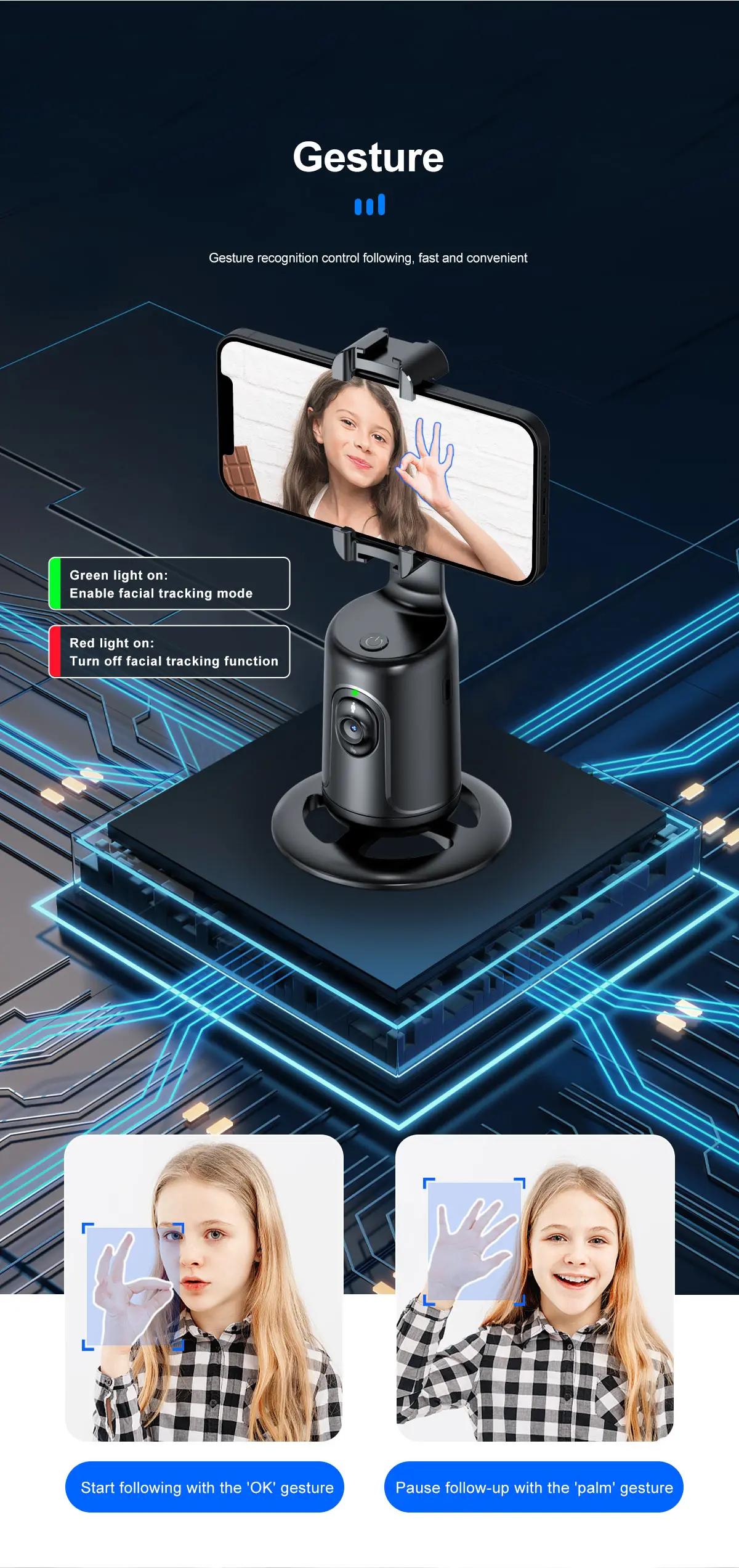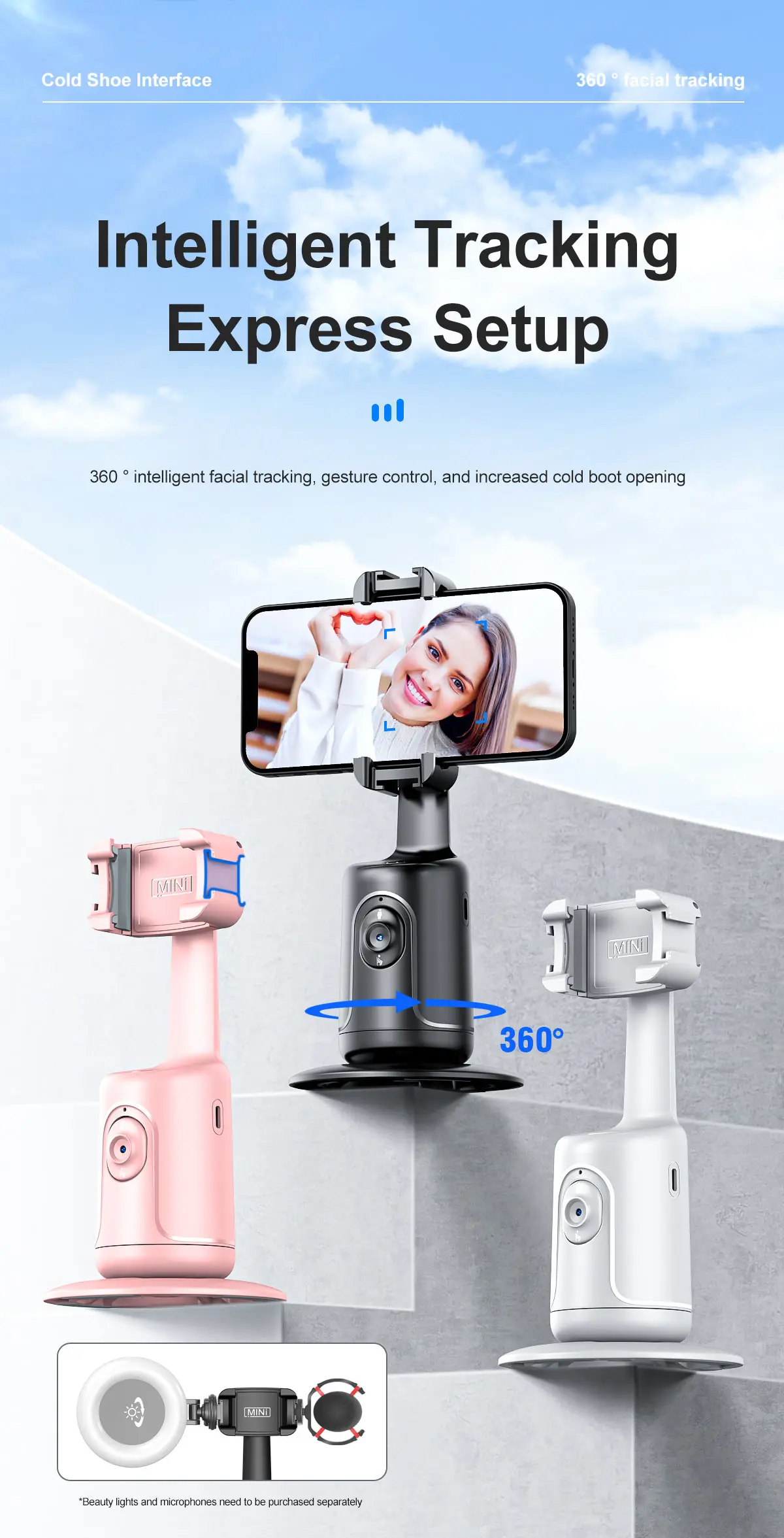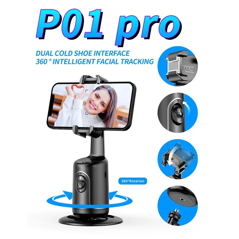 P01pro 2023 Oct New Auto Gesture Recogonization Face Tracking Gimbal Self Motion Smart Selfie Stick 360 Rotation