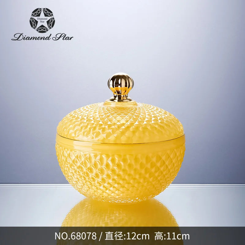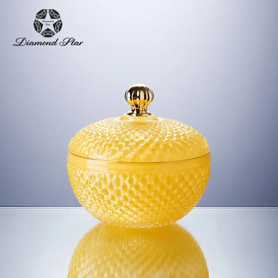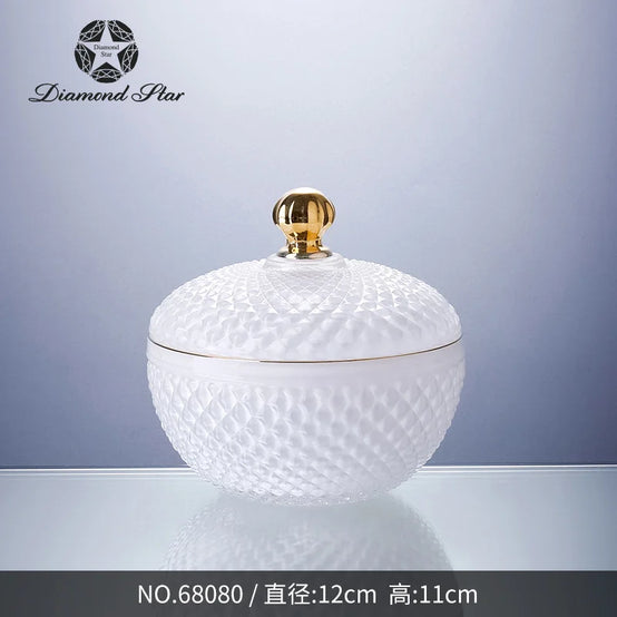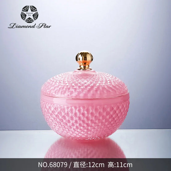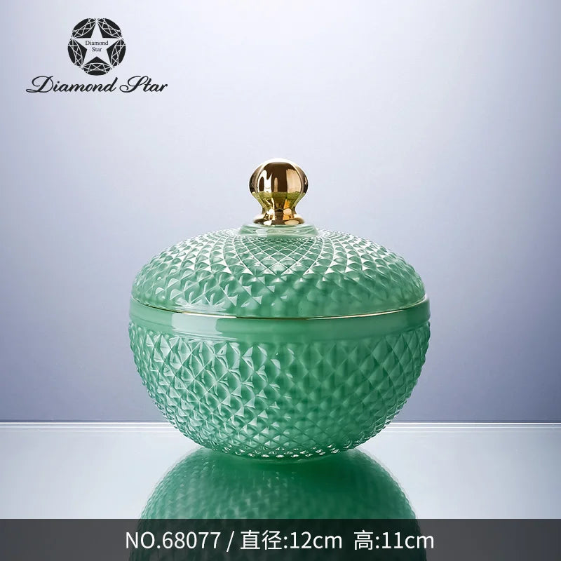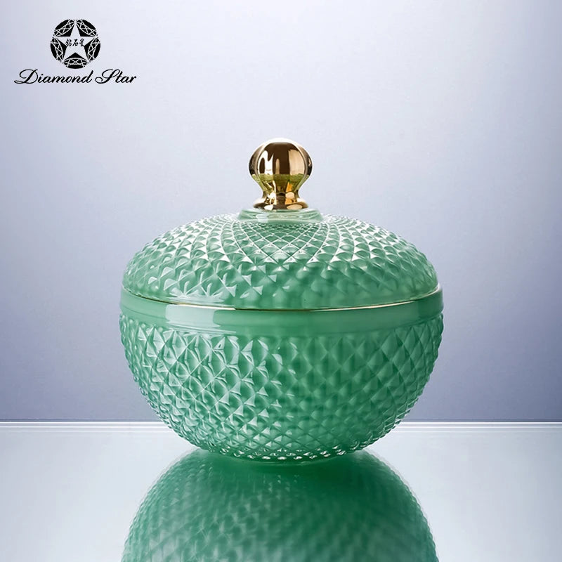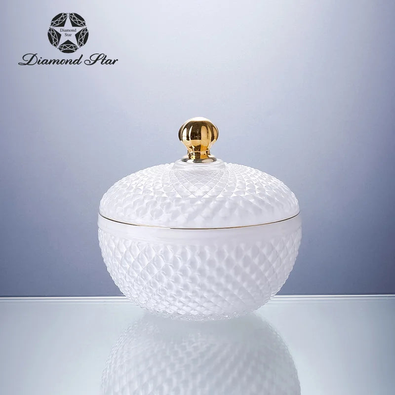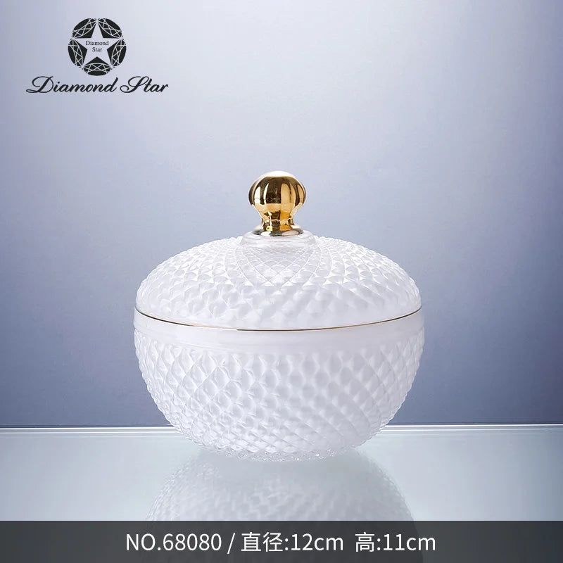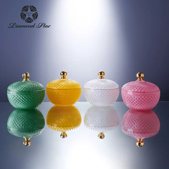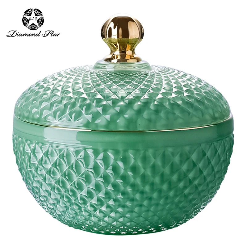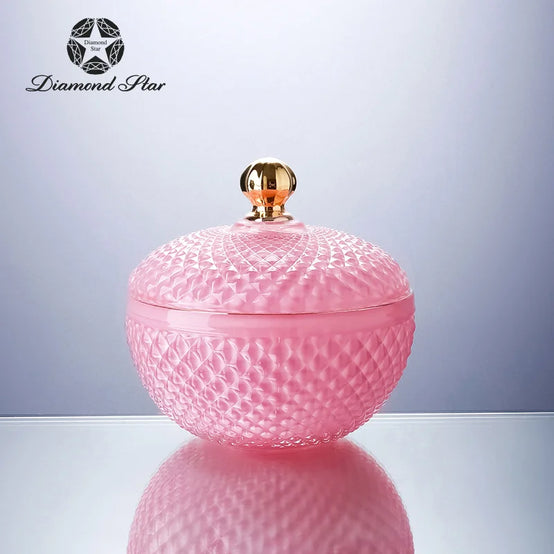 Diamond Star Nordic Wholesale Crystal Embossed Glass Beauty Holder Make Up Box Candy Jar Cosmetic Brush Storage Candle Glass Jar