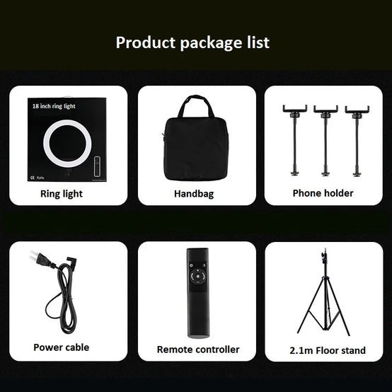 This professional led ring light can meet your different shooting environment. Led ring light can brighten your skin and enhance the three dimensional face. It is mainly used for fill light of webcasting, live broadcast, selfie lighting, beauty lighting, makeup lighting: