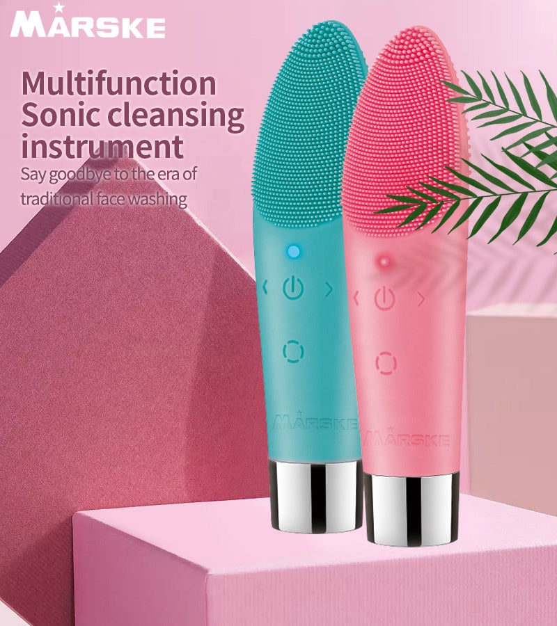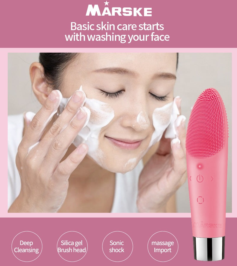 Hot selling 3-in-1 silicone facial cleansing, massage and shaving USB fast charge pink beauty products for ladies women.