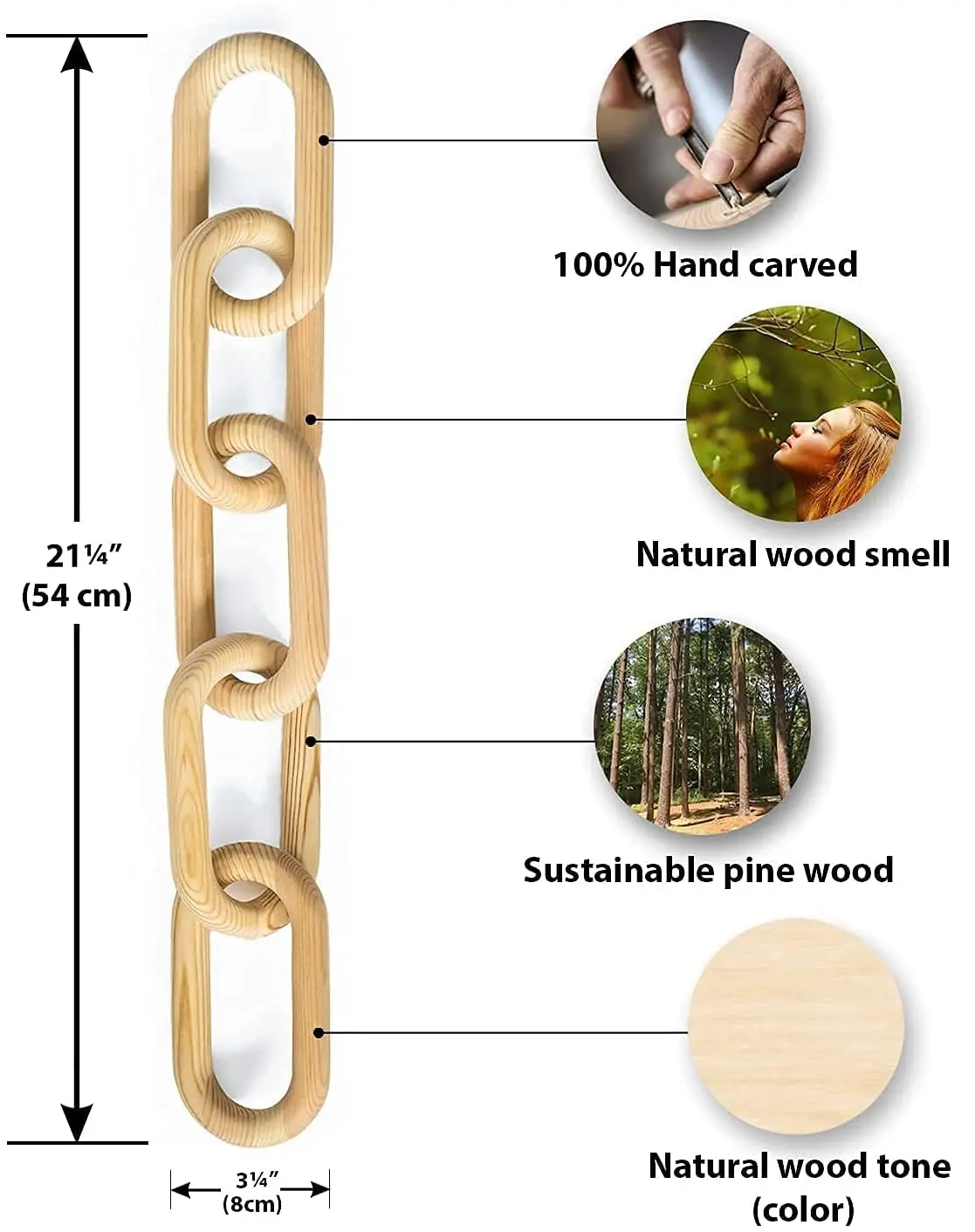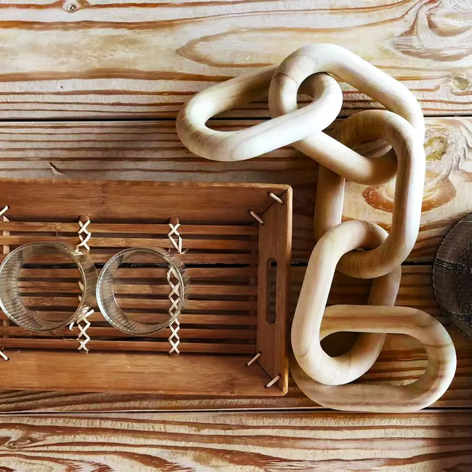 55 cm Wood Chain Link Decorations for Boho Home Modern Farmhouse Rustic Country Decor Living Room Bedroom