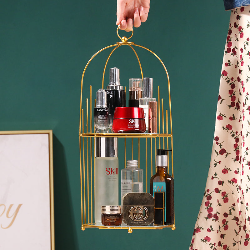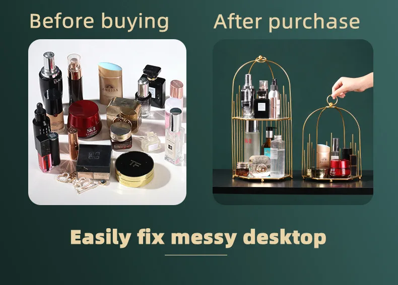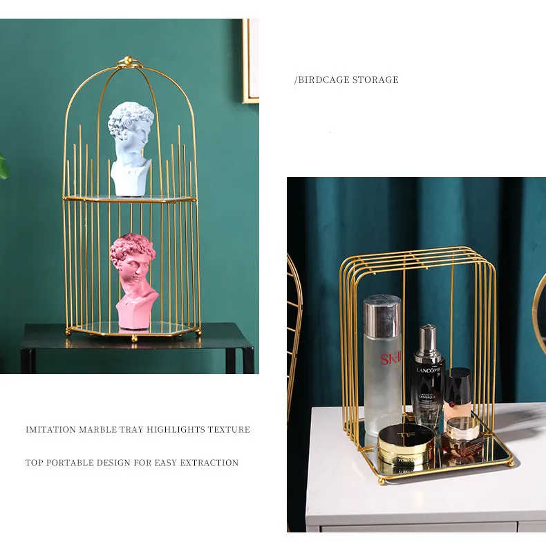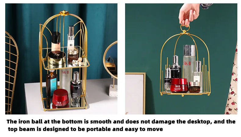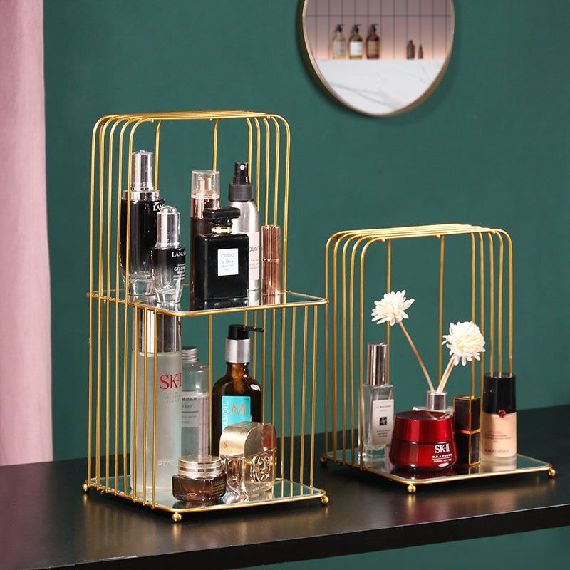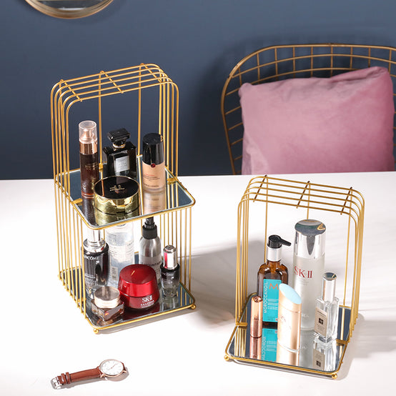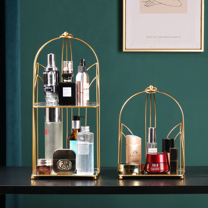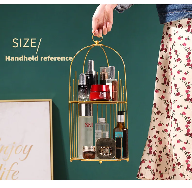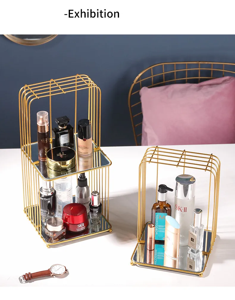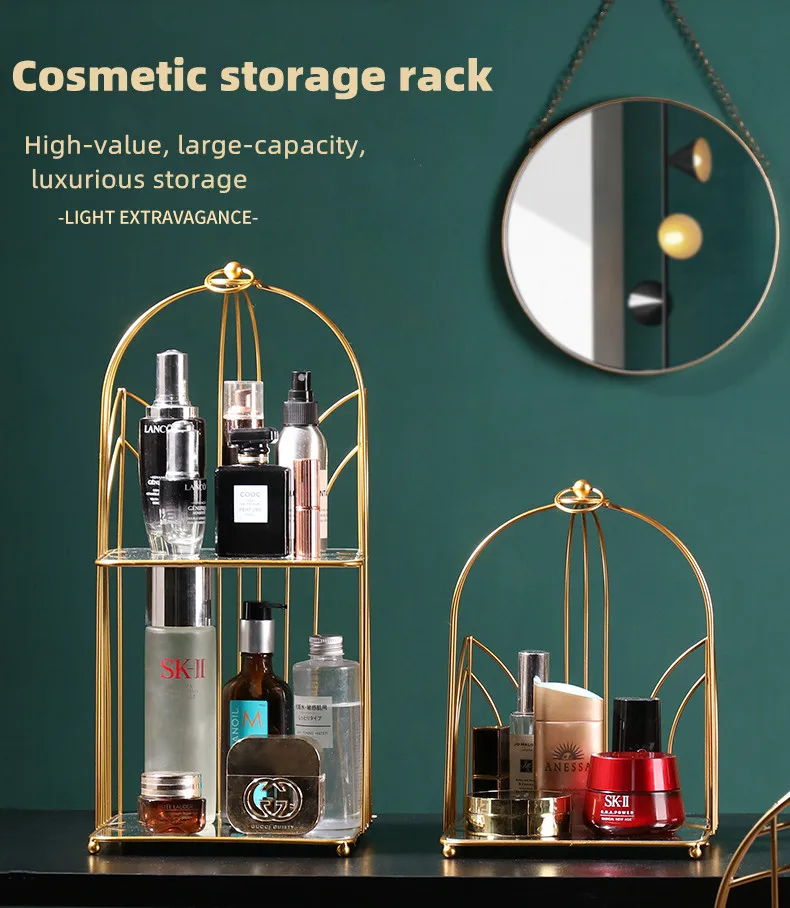 Creative ins golden luxury bedroom dressing table double skin care cosmetics rack light luxury desktop finishing storage rack