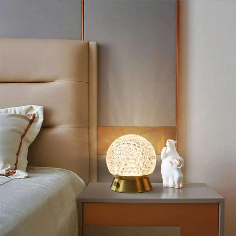 Crystal Table Lamp Bedroom Light Luxury Wind Ball Scattered Flower Atmosphere Bedside Lamp Romantic Charging Decor Night Lamp