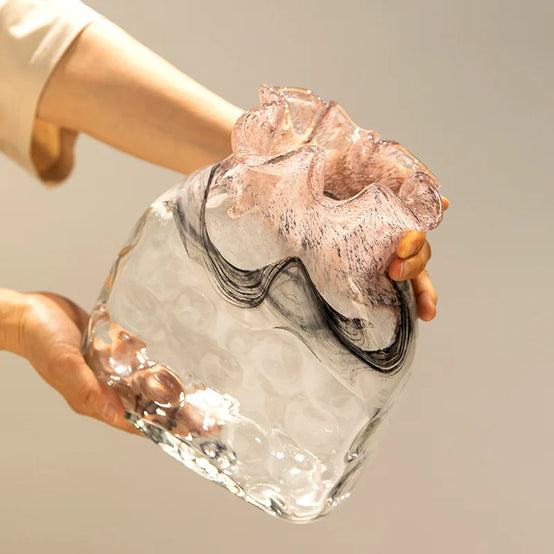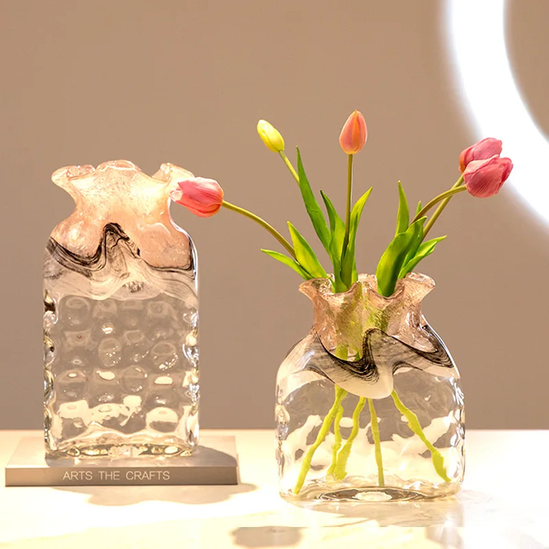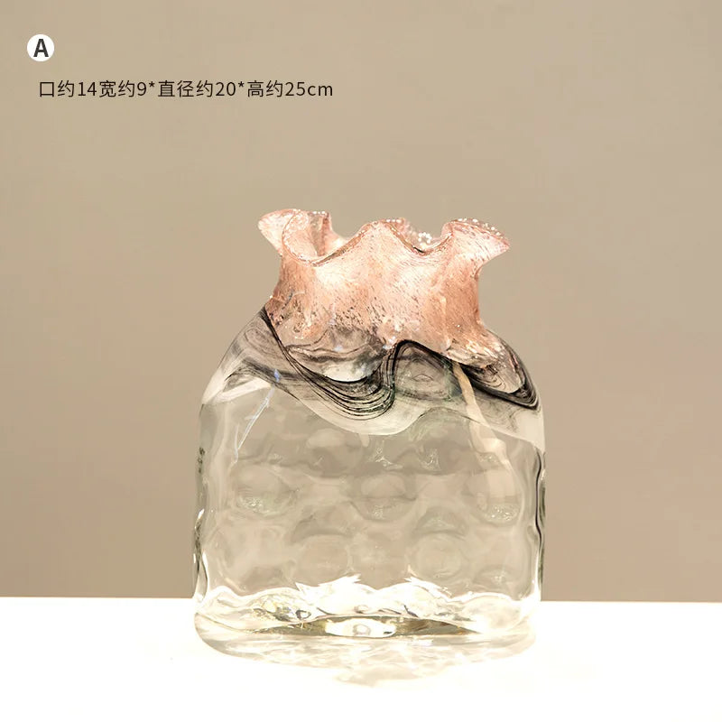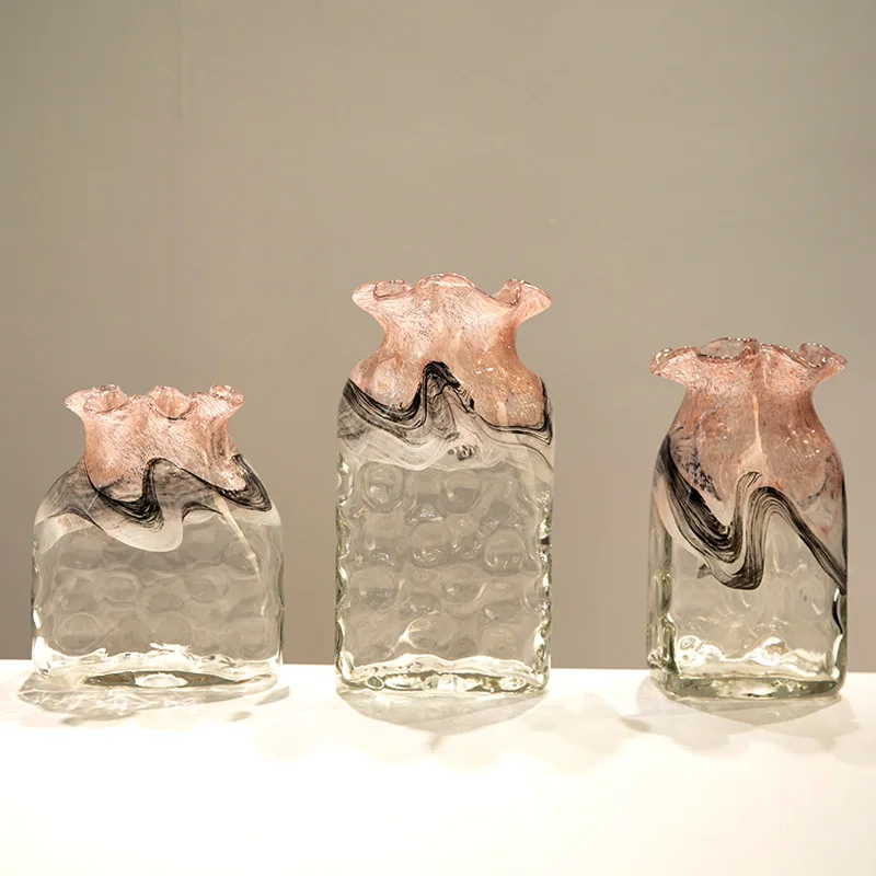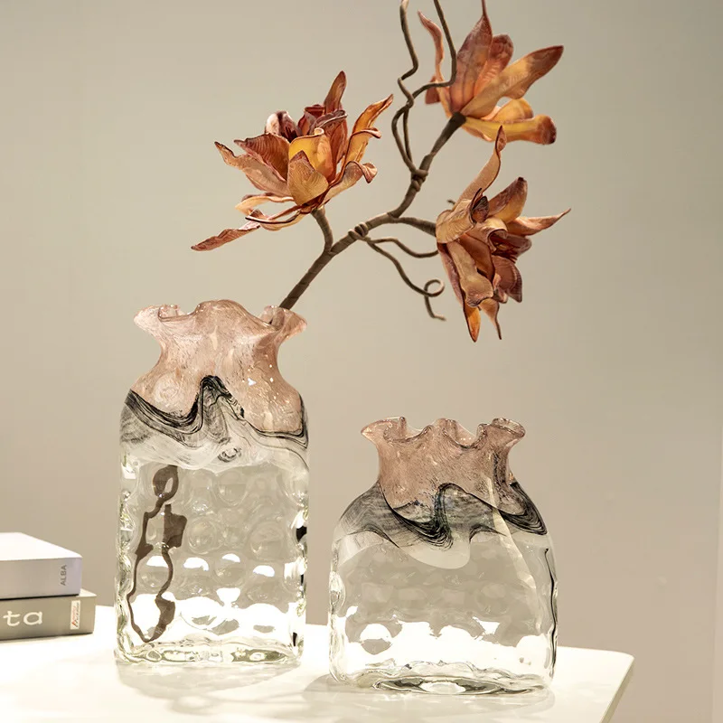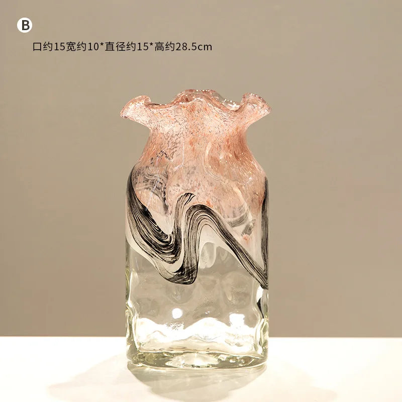 Nordic pink Ink Landscape Ice Crack Gradient Handmade Glass Vase Model Room Living Room Dining Table Bedroom Glass Vase