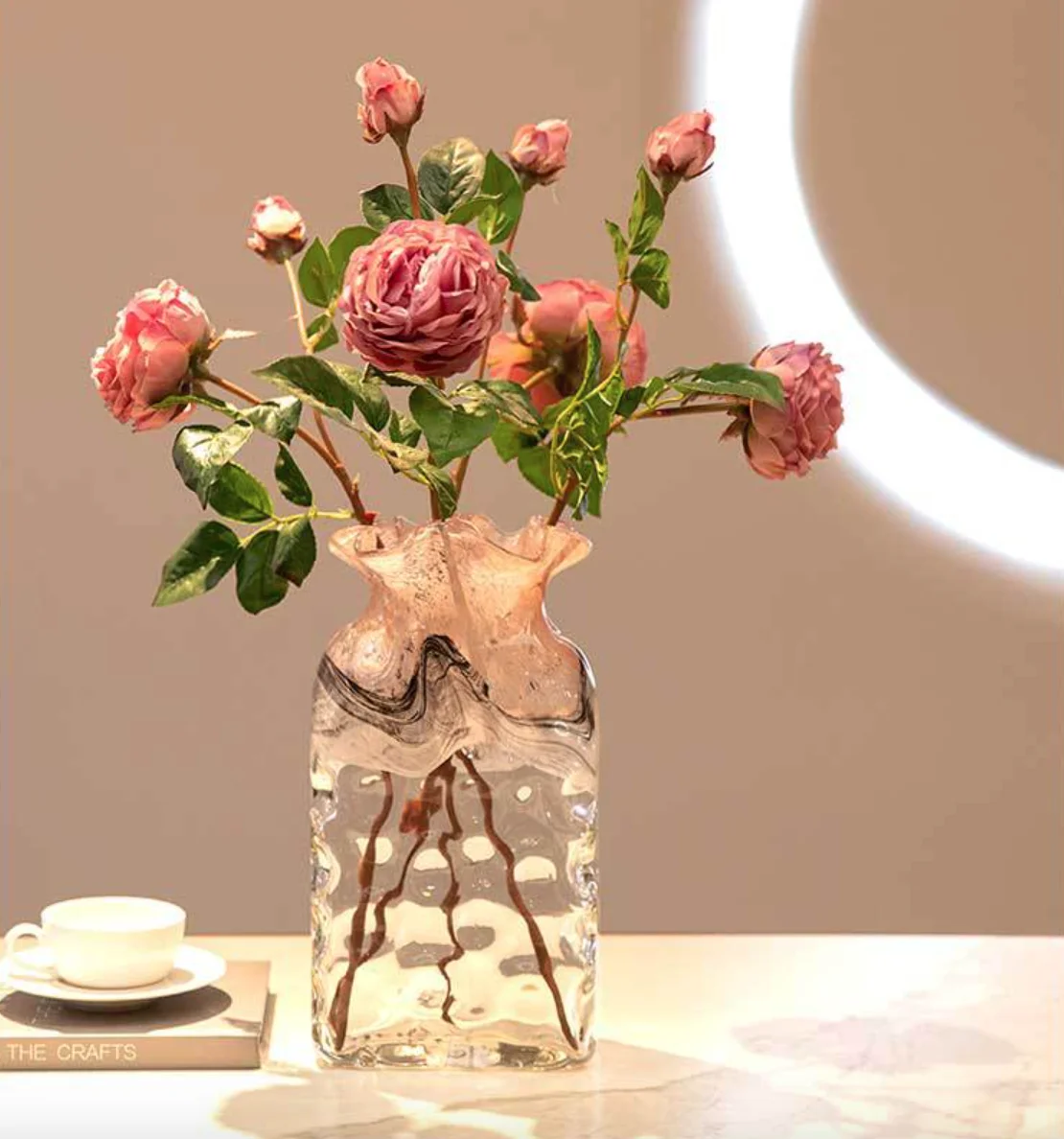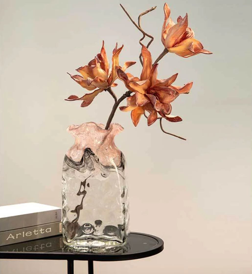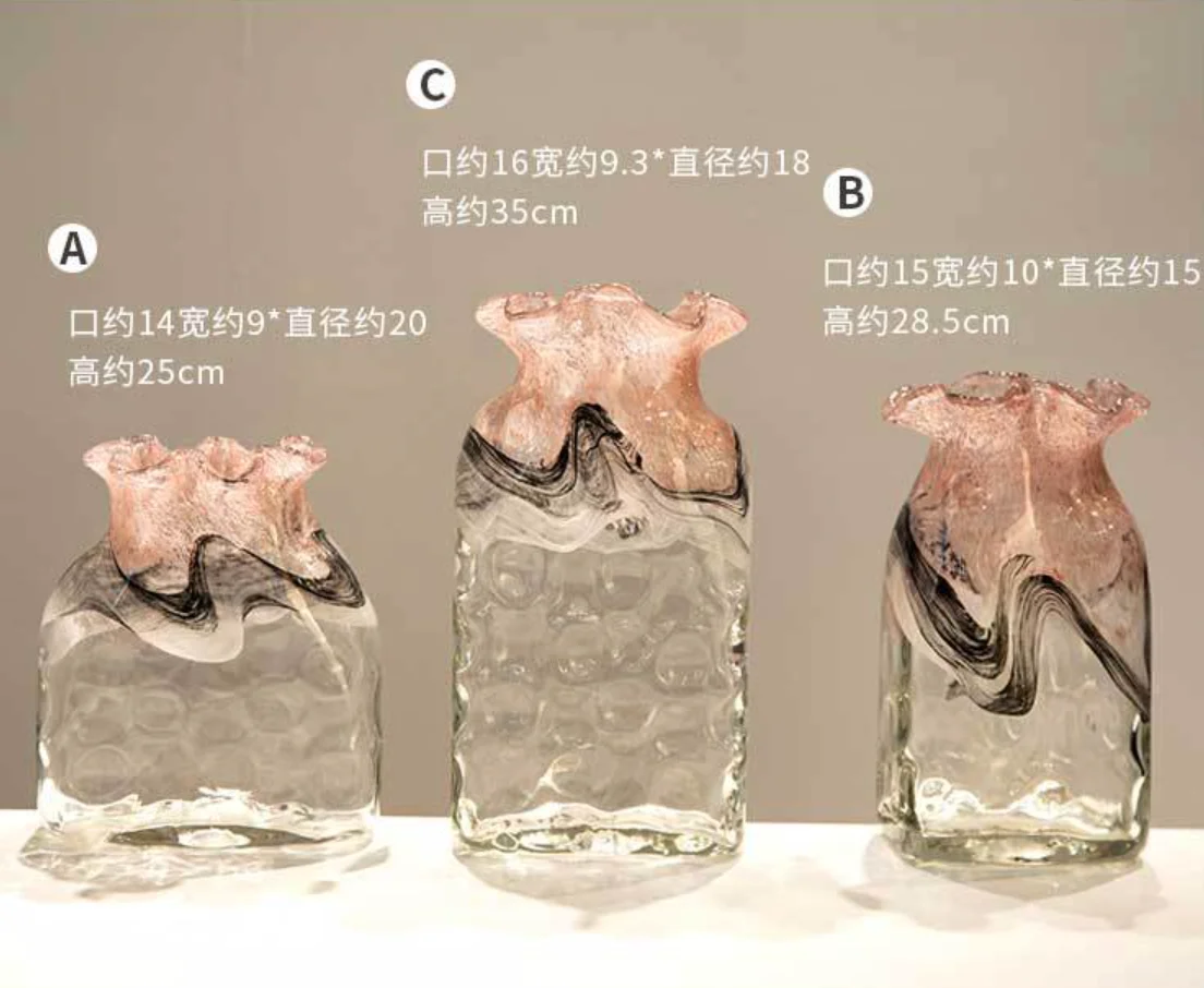 Nordic pink Ink Landscape Ice Crack Gradient Handmade Glass Vase Model Room Living Room Dining Table Bedroom Glass Vase