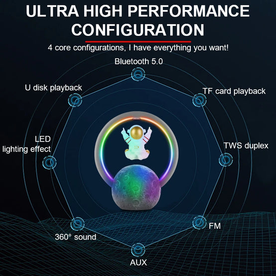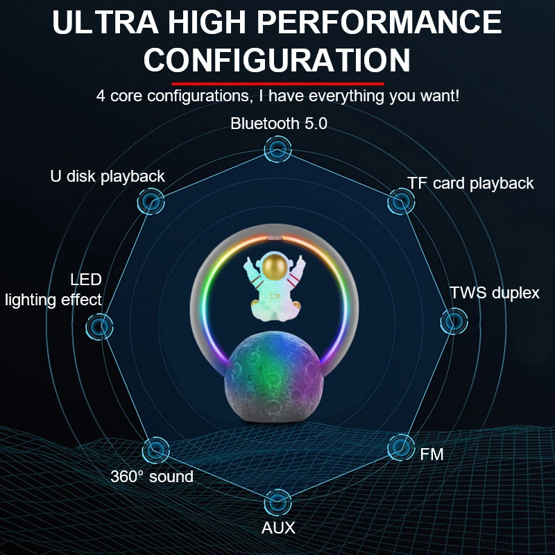 Novelty levitate astronaut night light with wireless speaker usb rechargeable touch control RGB desk lamp for kids bedroom gift