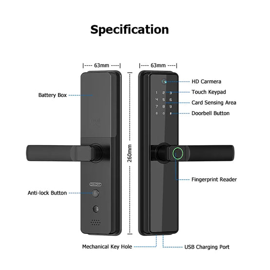 tuya wifi smart lock with camera and doorbell bedroom home digital biometirc fingerprint intelligent handle electronic locks