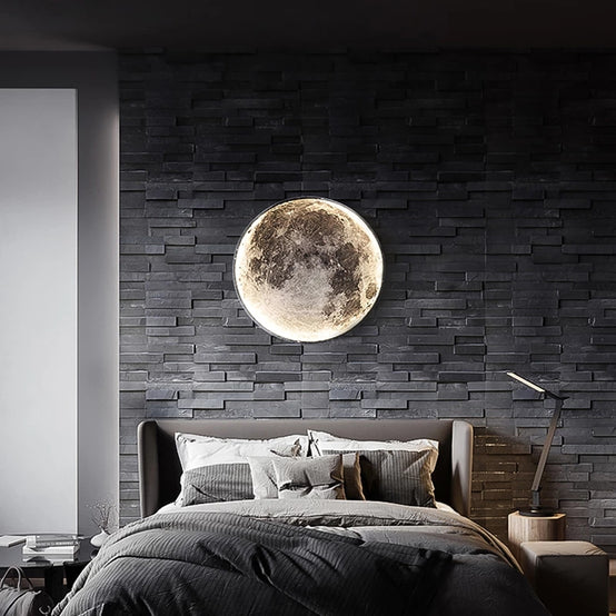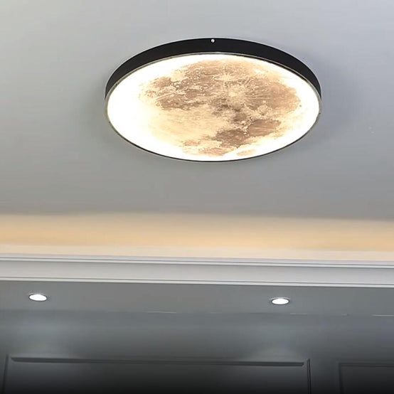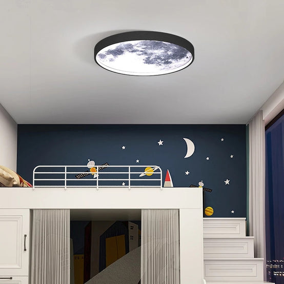 Round Ceiling Lamp Black Kids Bedroom Flush Mount Light Fixtures Modern Led Moon Celling Lights