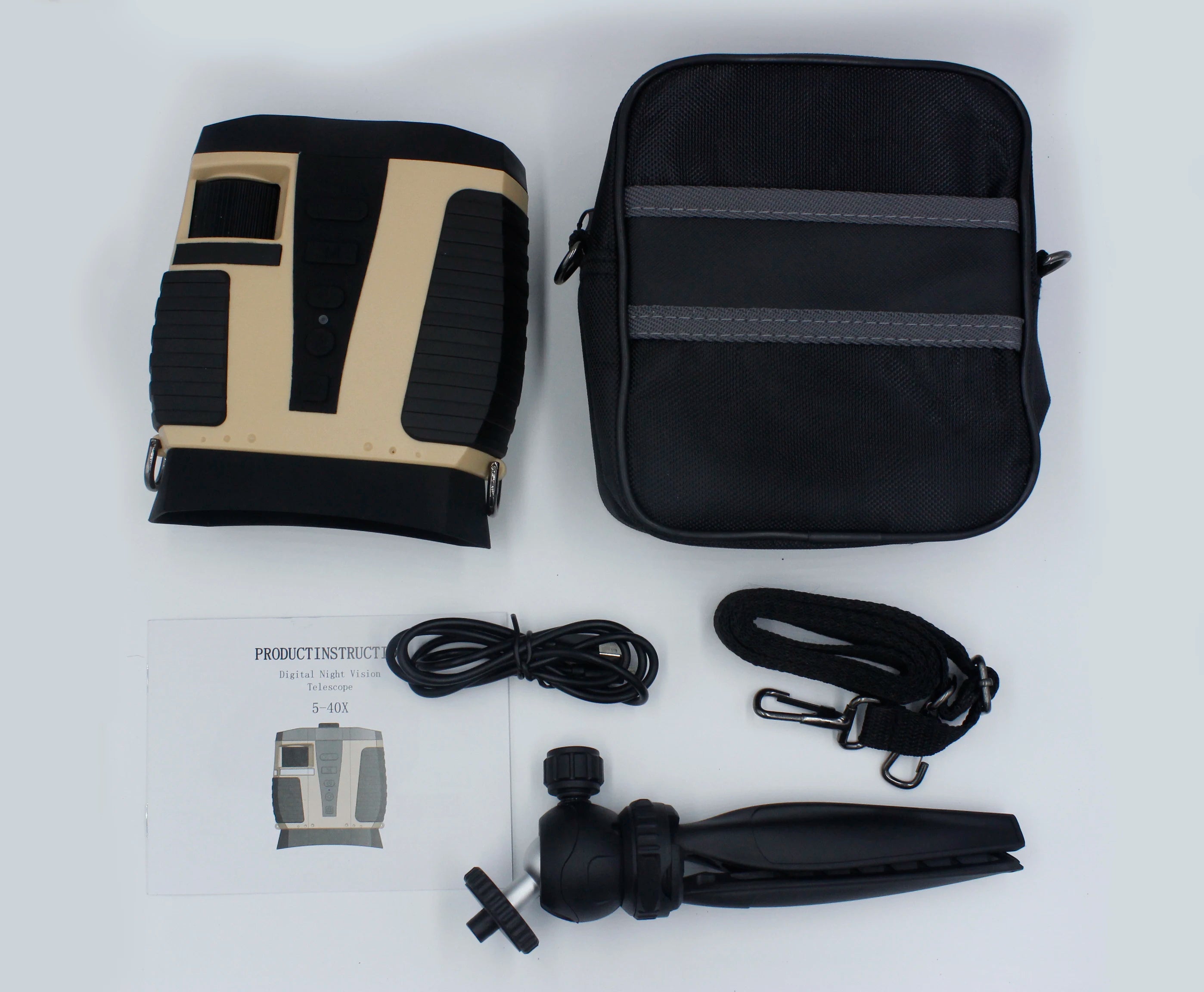 Full Accessories: 1* Digital Night Vision Binocular 1* USB Cable 1* Carrying strap 1* User Manual 1* Carrying Bag 1* Lens cleaning clothes 1* Tripod 1* 18650 Battery
