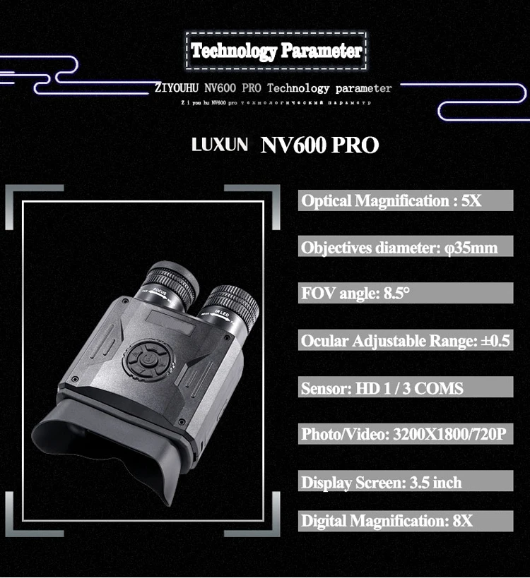 LUXUN HD Digital Zoom Night Vision Binoculars NV600 Pro Infrared Night Vision Goggles for Hunting Night Vision Scope