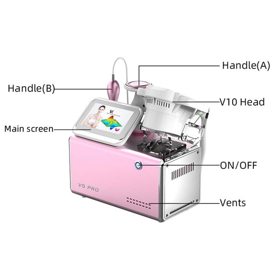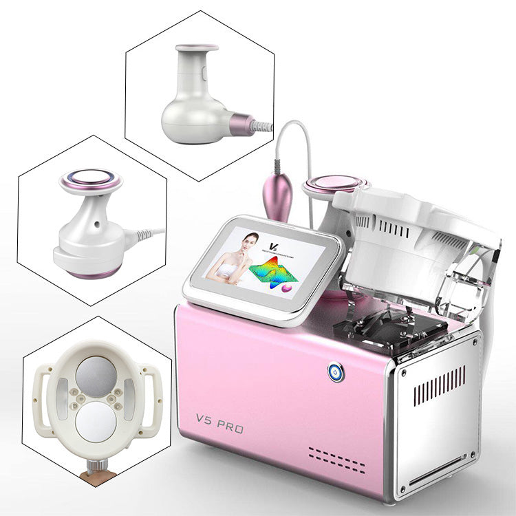 2. V5 handle with 5 technology: cavitation + RF + vacuum + infrared LED.