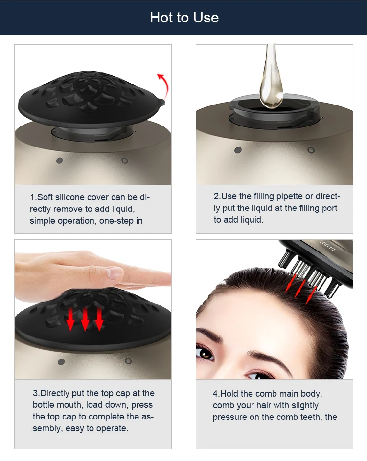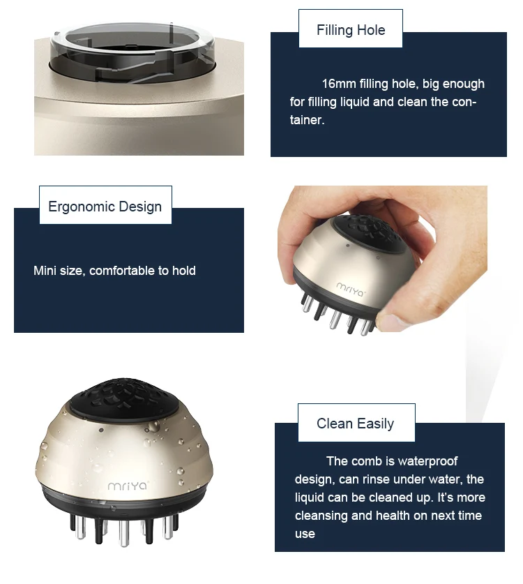 [30ML large Liquid Tank] The hair care brush built-in a 30ml liquid tank in where you can put hair nutrient solution, essential oil, hair conditioner ext. It is big enough to meet one time treatment usage. Note: this is not design for liquid storage, please use out of all liquid each time, or it may make liquid get bad or other problems.