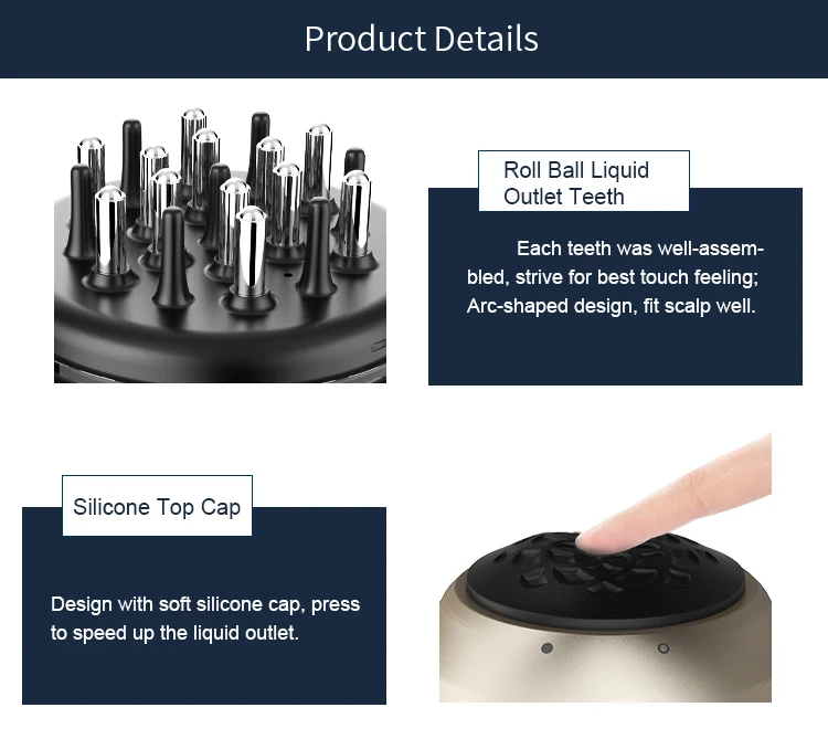[Easy to Grab & Portable] The surface of the scalp applicator brush is uneven ergonomic design, you can hold the body easily. No battery required,just press the month cover and release the liquid. Compact, slim and lightweight body, it is portable to carry any where.