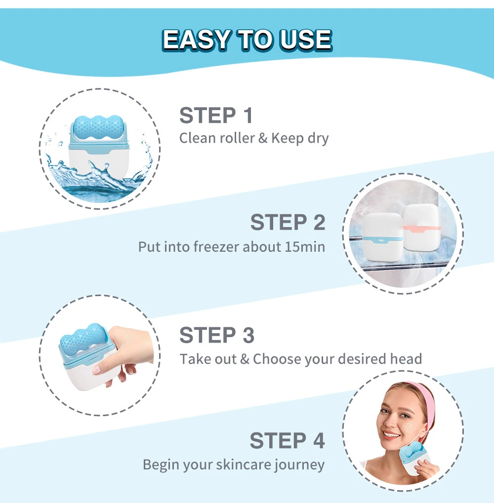 Skin Ice Cooling Facial Roller Wavy Skin Massager Reduces Puffiness Migraine Pain Relief Facial Skin Care Products