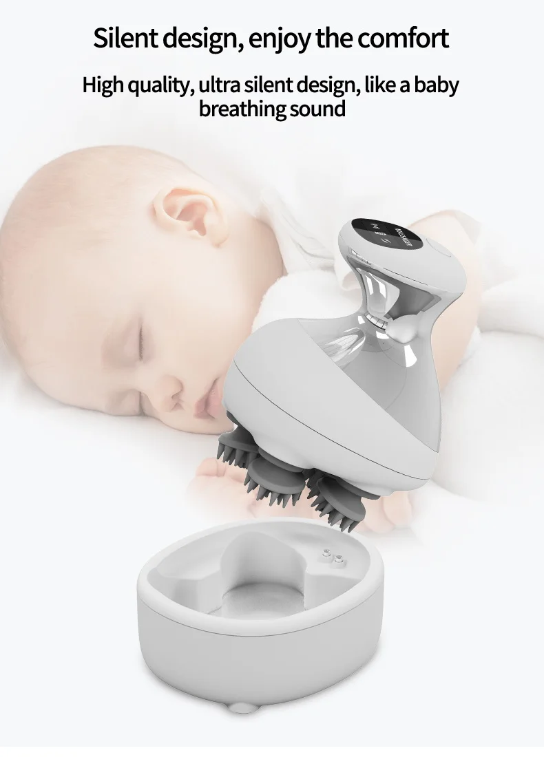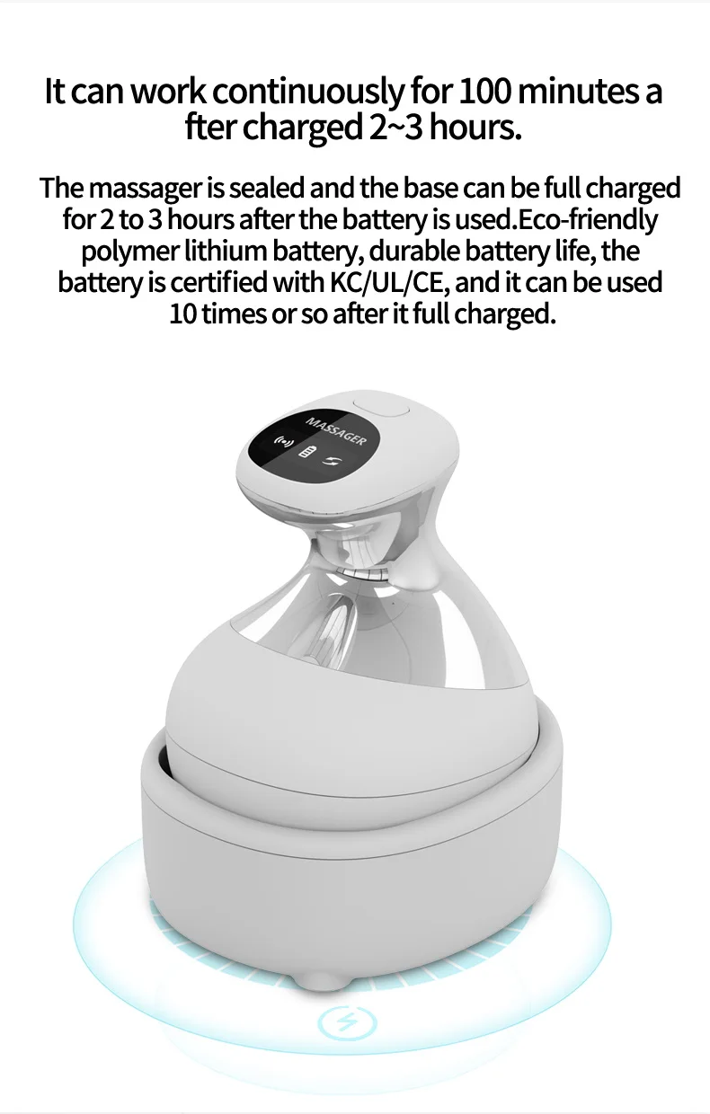 【Portable & Rechargeable】 The electric hair scalp massager is powered by rechargeable 1200mAh lithium-ion battery, so no need to plug in while in use. The massage tool comes with a charging base and a USB charging cable and it lasts for a couple of houses on one full charged. It’s compact, cordless portable design allows you to massage anywhere on-the-go.