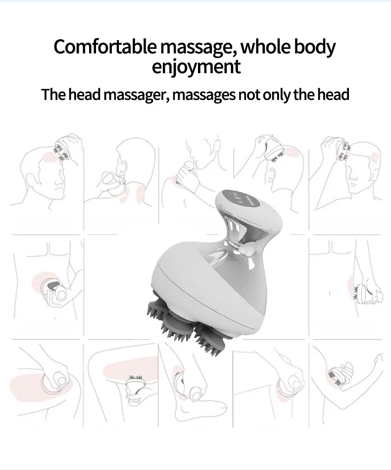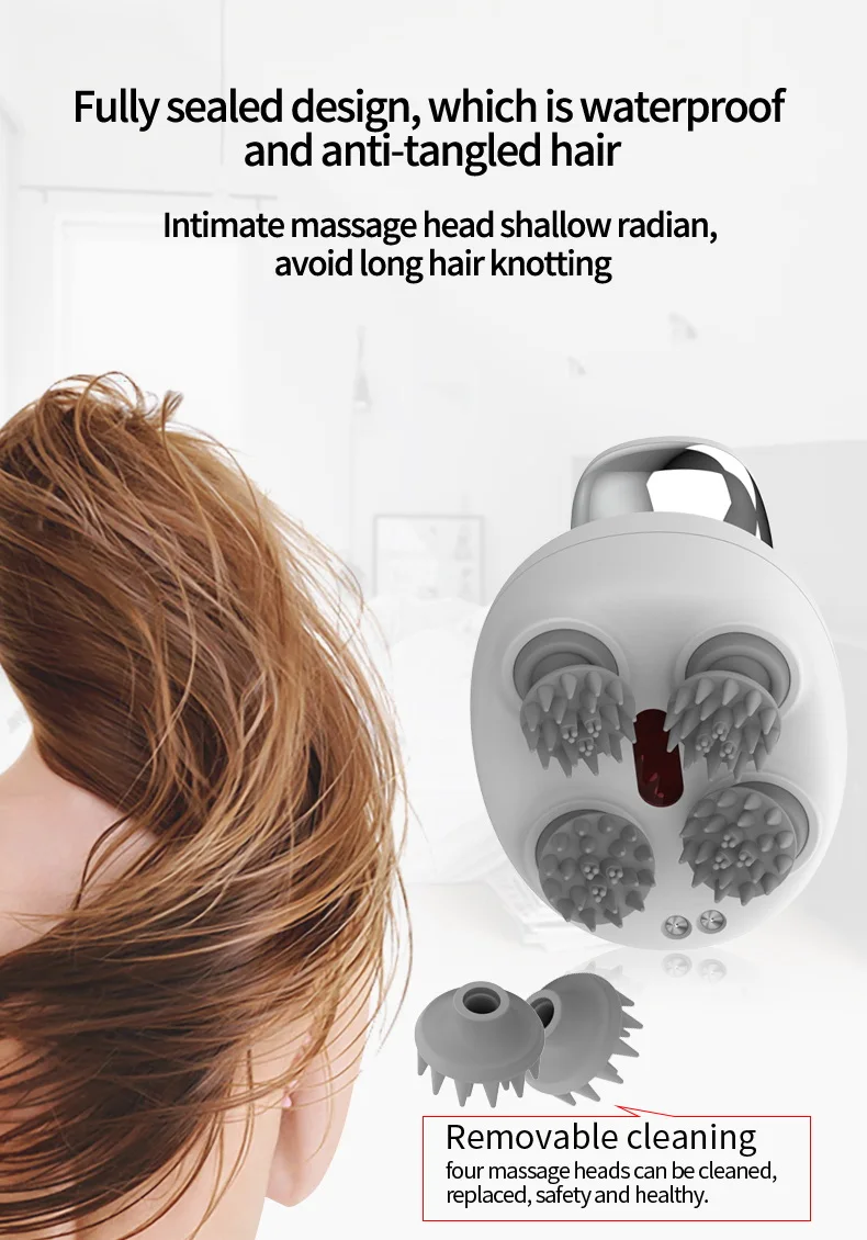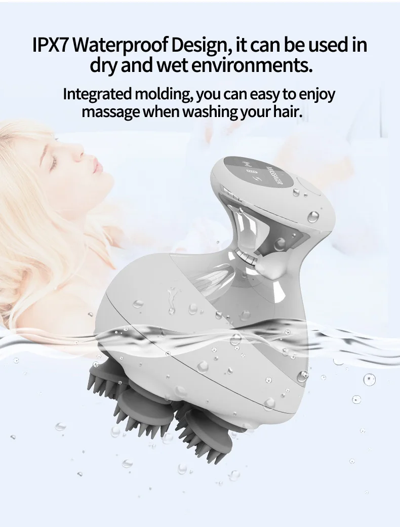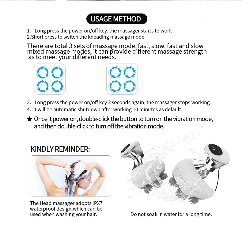 【 Waterproof & Skin-friendly】 The electric head massager is made from IPX7 Waterproof material allowing you to use it while taking a shower for a proper scalp massage. The eco-friendly soft silicone heads prevent hair from being pulled or tangled and not hurt your skin. The massage nodes are detachable for easy cleaning.