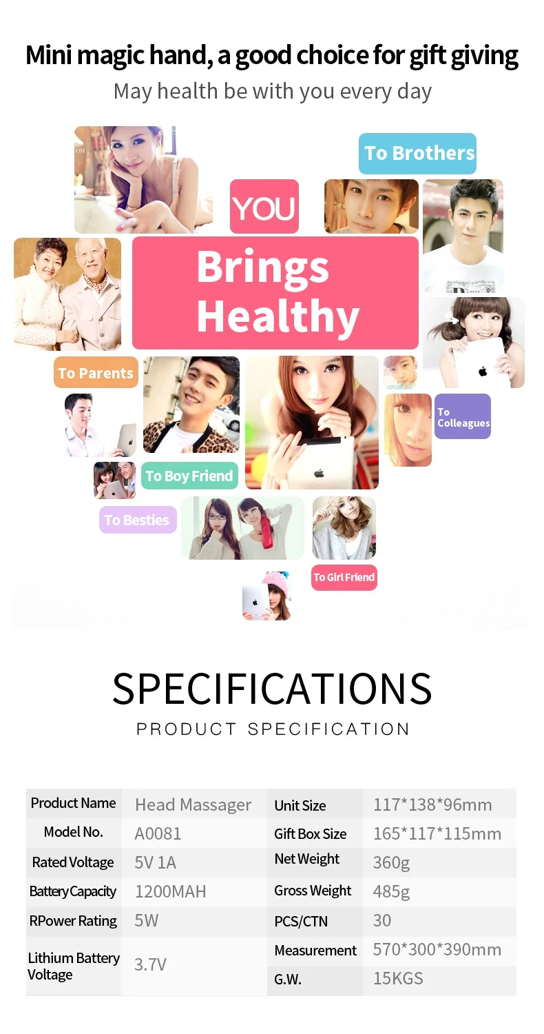 1x Gift Box,1 x Head Massager, 1 x Manual, 1 x USB Cable, 1 x Charging Base