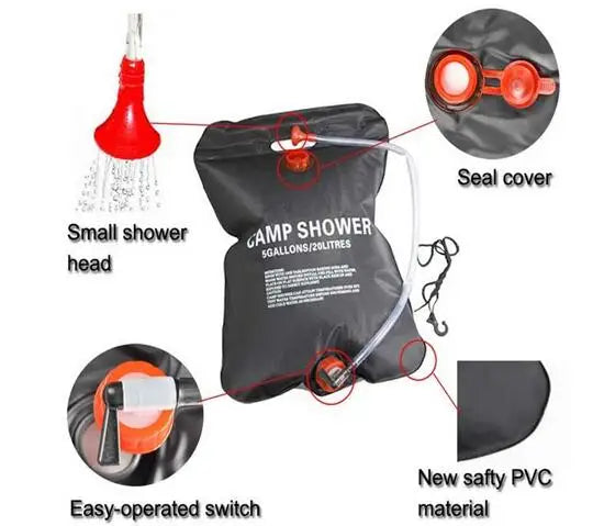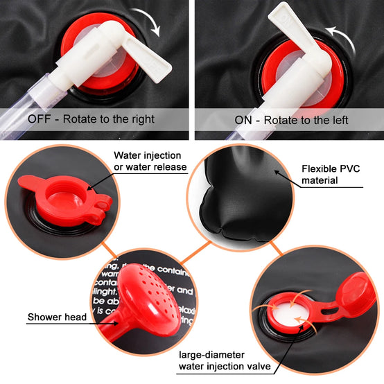 Custom Logo New Arrival Outdoor PVC Solar Heating Shower bag Black Water Bag Utility Storage Shower Bag Camping Bathing Shower