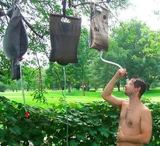 2. Lay flat the shower bag (filled with water) and keep the black side up to sunlight directly.