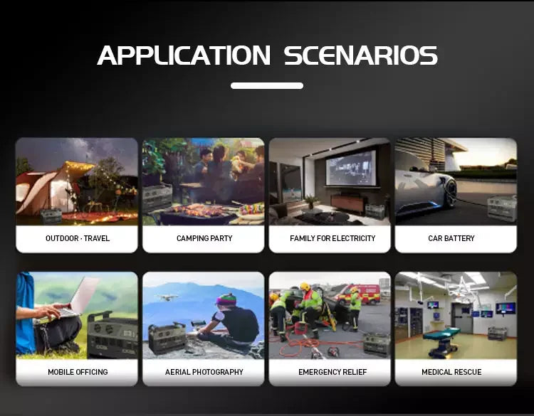 Travel, camping party, home backup power, mobile office, aerial photography, outdoor video, car charging Emergency preparedness,