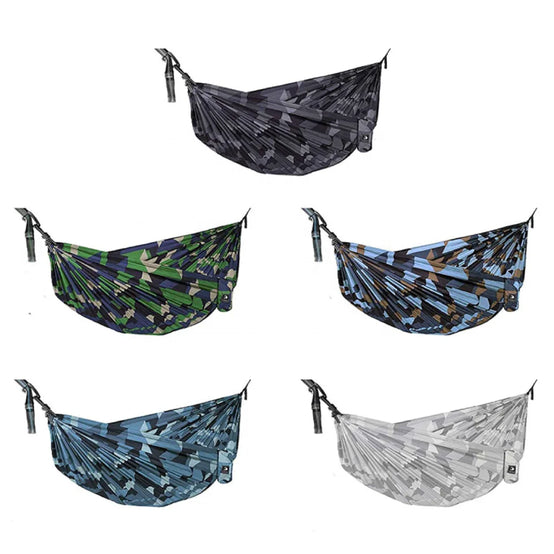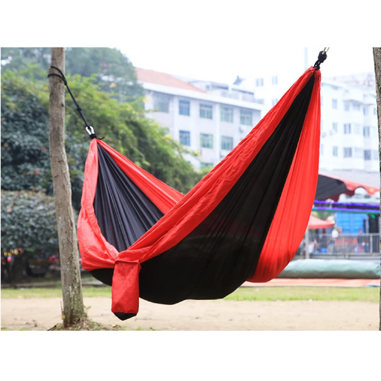 Comfortably supporting up to 400 lbs/ 200 kg, Luxuriously sized. The double camping hammock fits 2 people, Due to used of the new 210T nylon parachute fabric, The hammock could support up to 400 lbs. You can lay down with your friend or loved one. Enough tension to enable each other have a comfortable space.