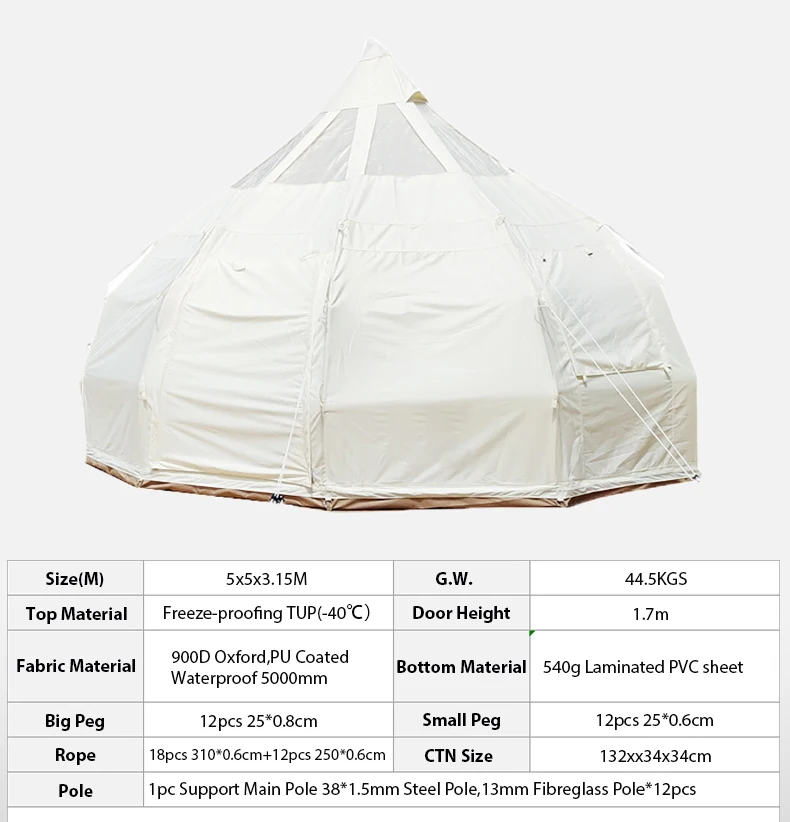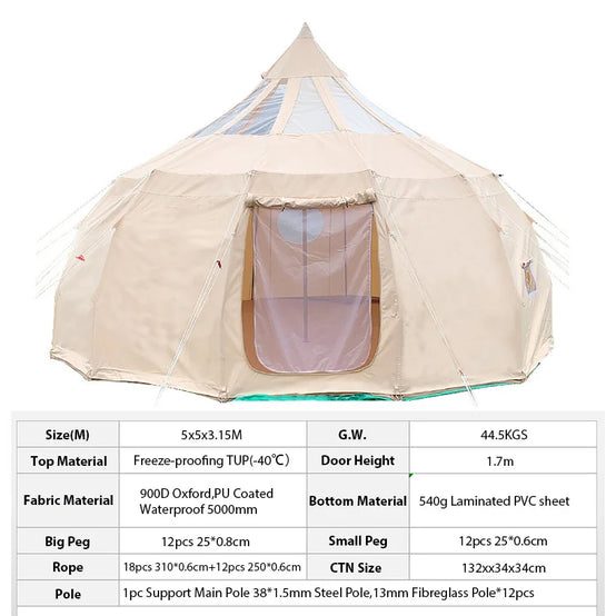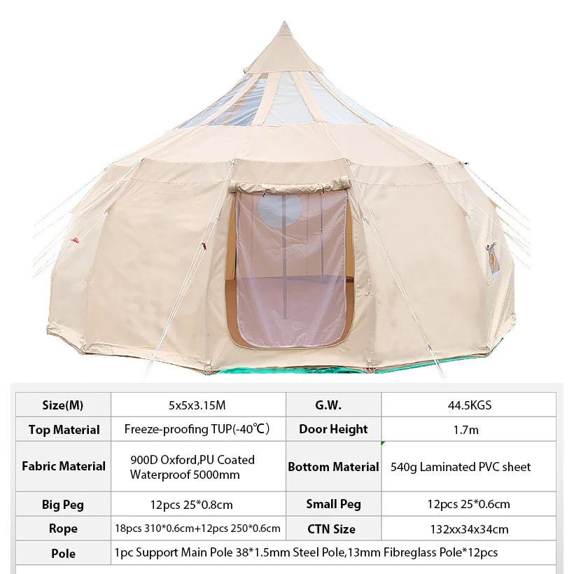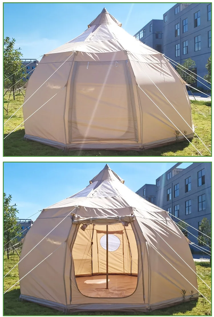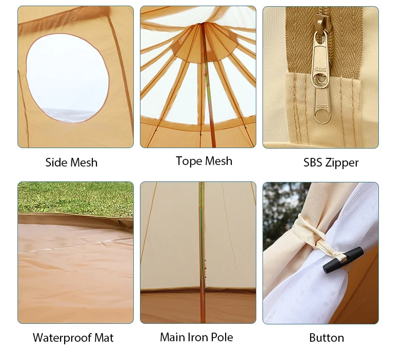 Outdoor Glamping Cotton Canvas Bell Tent Teepee Yurt Tent For 4 Season