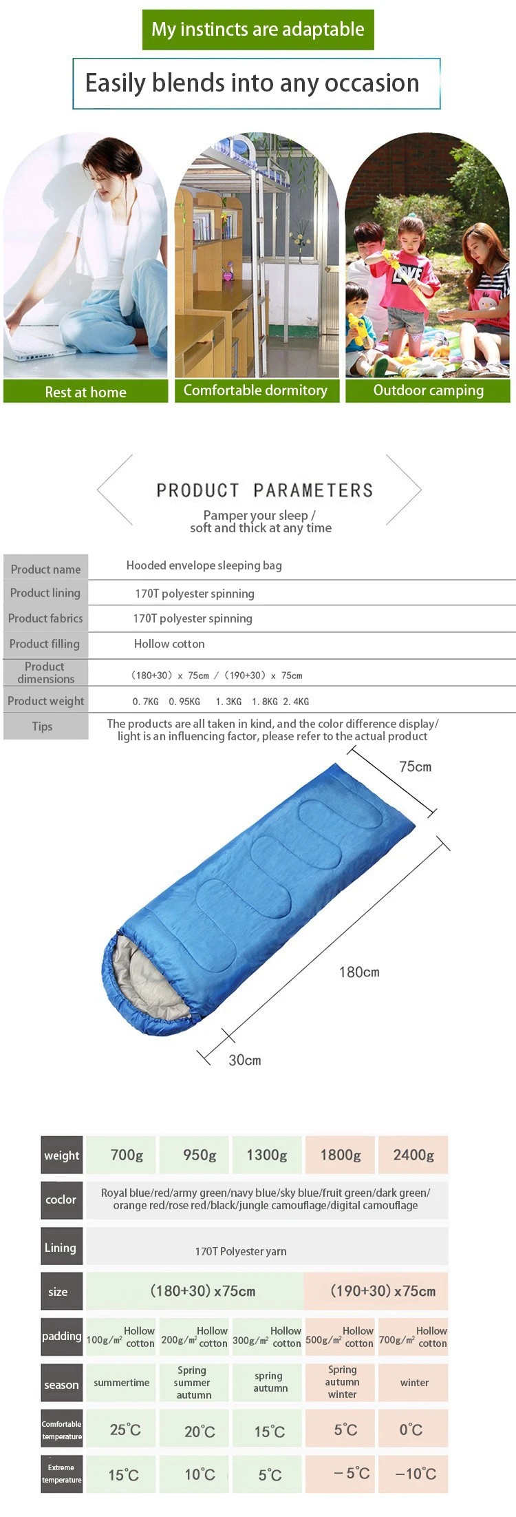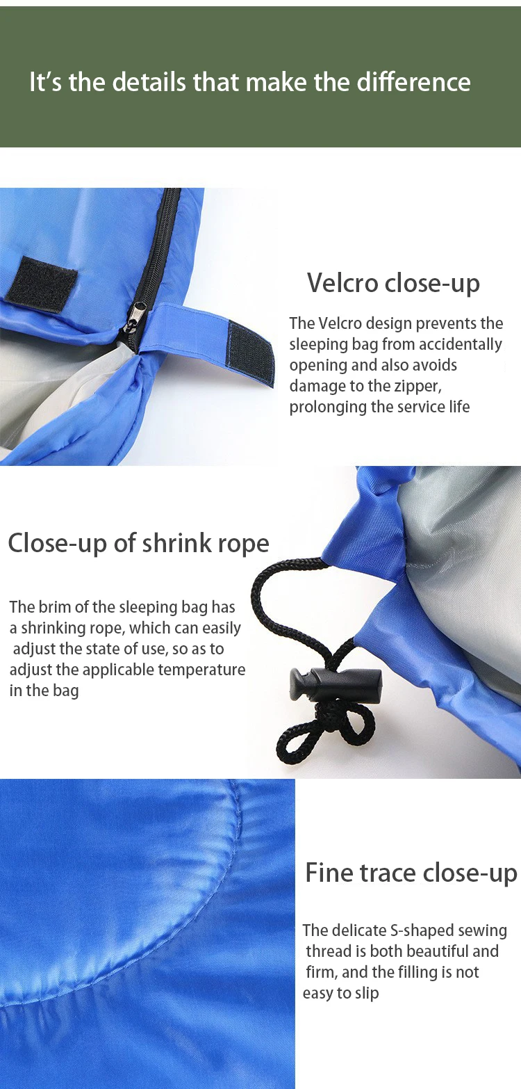 FCamping Equipment 2.4kg Plush Outdoor Waterproof Envelope Shape Sleeping Bag Winter Sleeping Bag Goose Down Nylon Fabric
