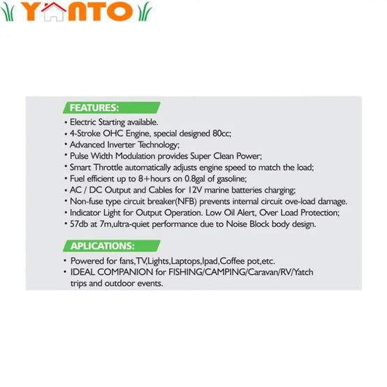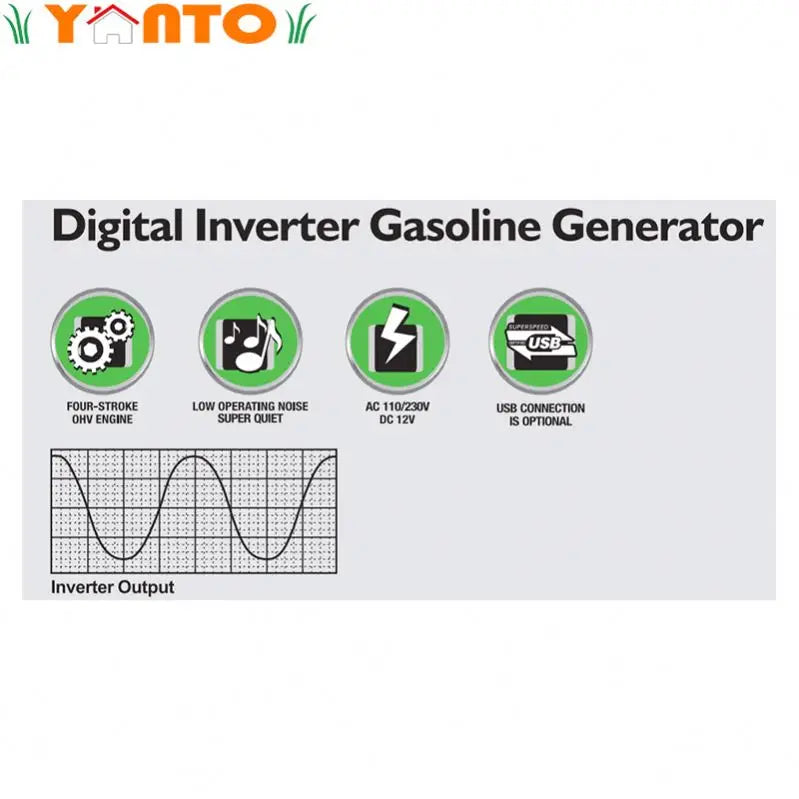 GEN-2600I Portable 2100W Gas Generator Single Phase AC/DC Inverter with Electric Key Start Camping Home Use 80cc Displacement